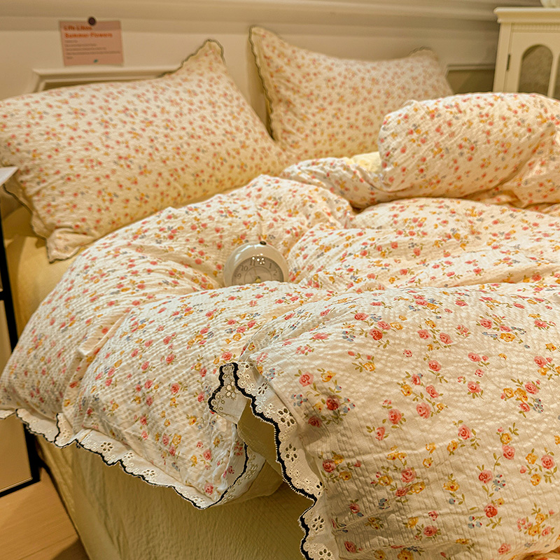(总)一比一家纺 2026新款彩色全棉花边木棉皱皱纱四件套,阿吉豆,初心粉,初心蓝,扶摇,赫本,花间女孩,花漫漫,花蜜,阑珊,罗卡,奶芙喵,甜心格格,午后花园,小马驹,邂逅,野餐兔,樱花季,悠然,紫烟