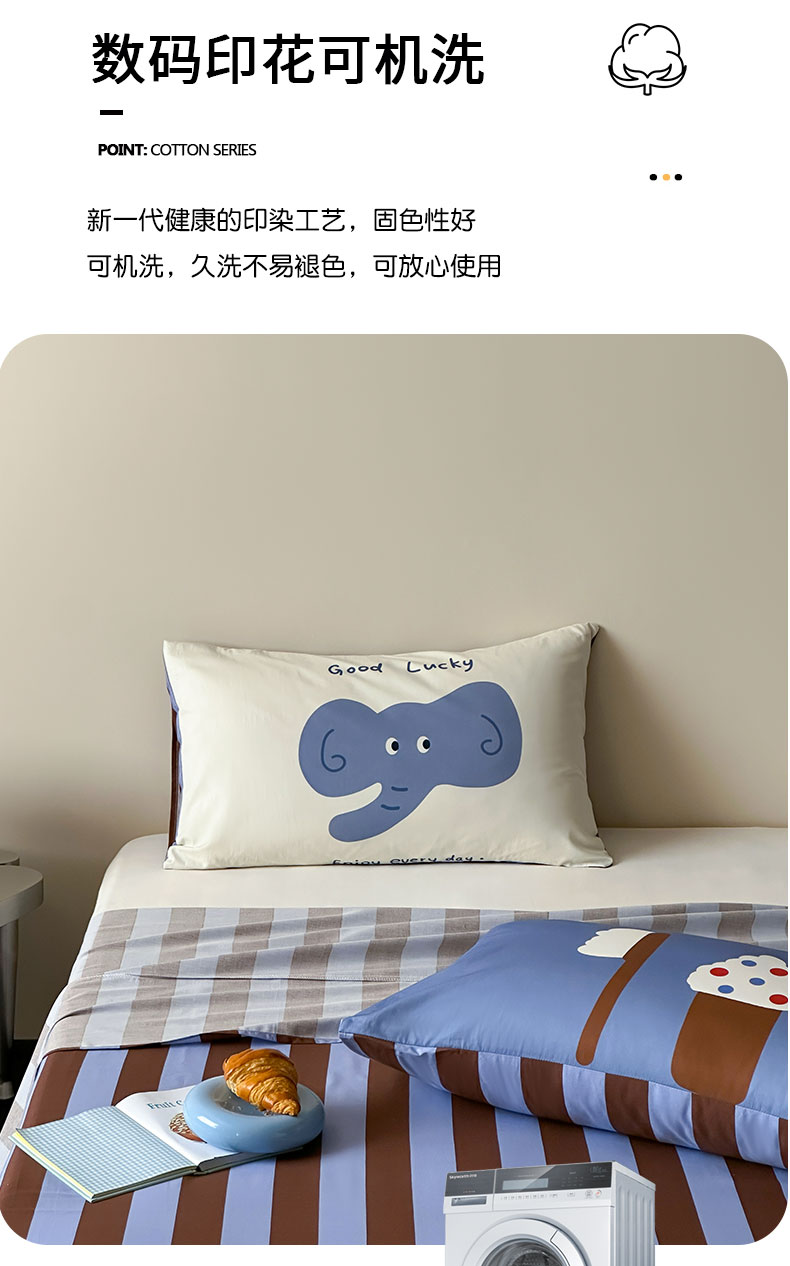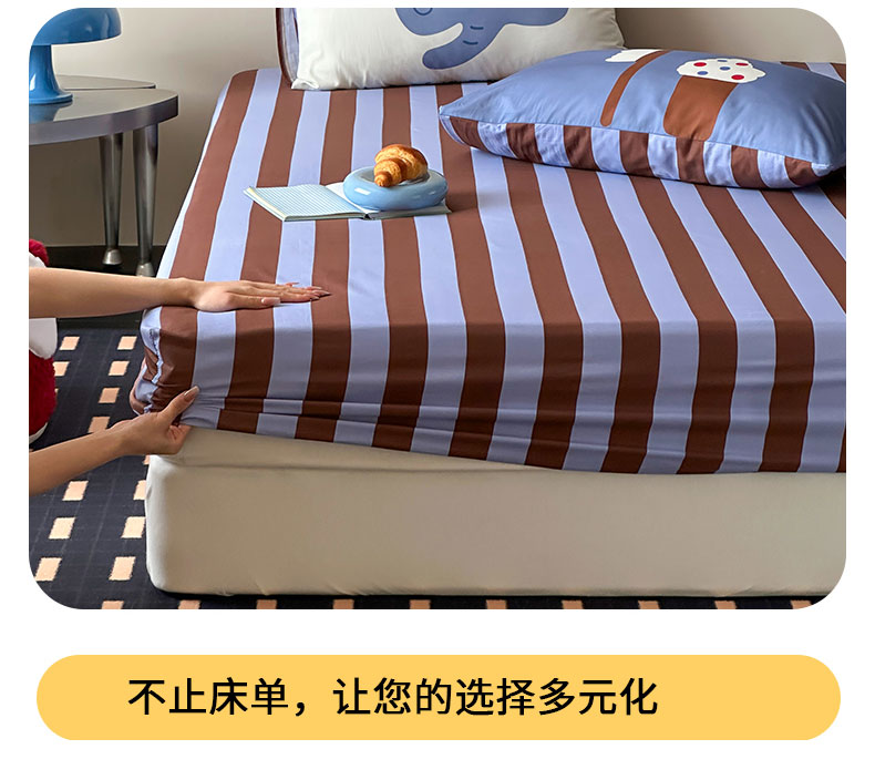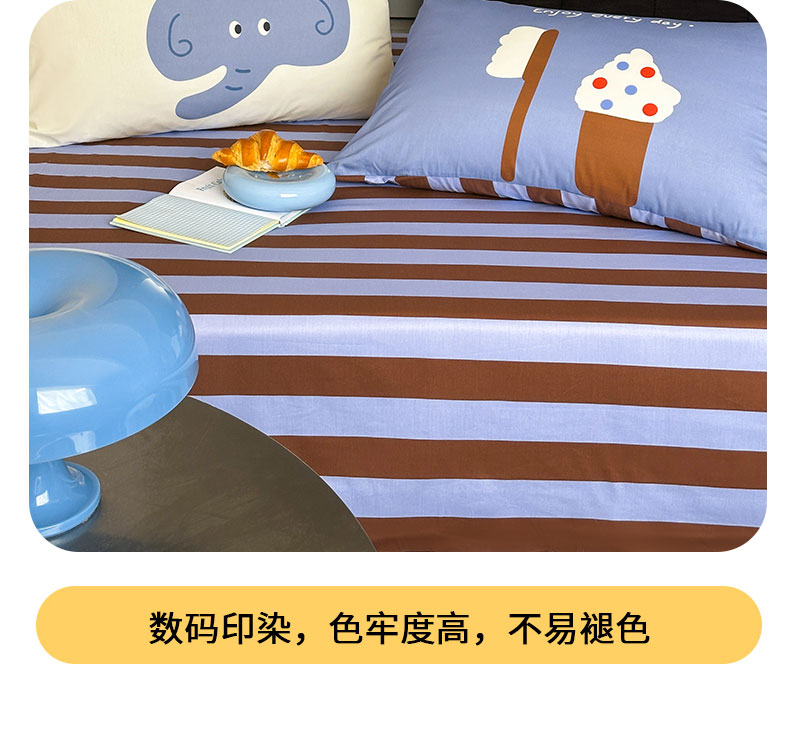 • 91家纺网 家纺一手货源 找家纺 桃子家居 2026新款A类全棉纯棉水洗简约混搭数码印花条纹星纹复古治愈卡通单品床单床笠系列 水洗棉单品床单-蓝棕小甜象