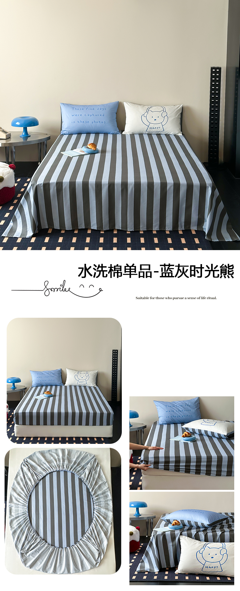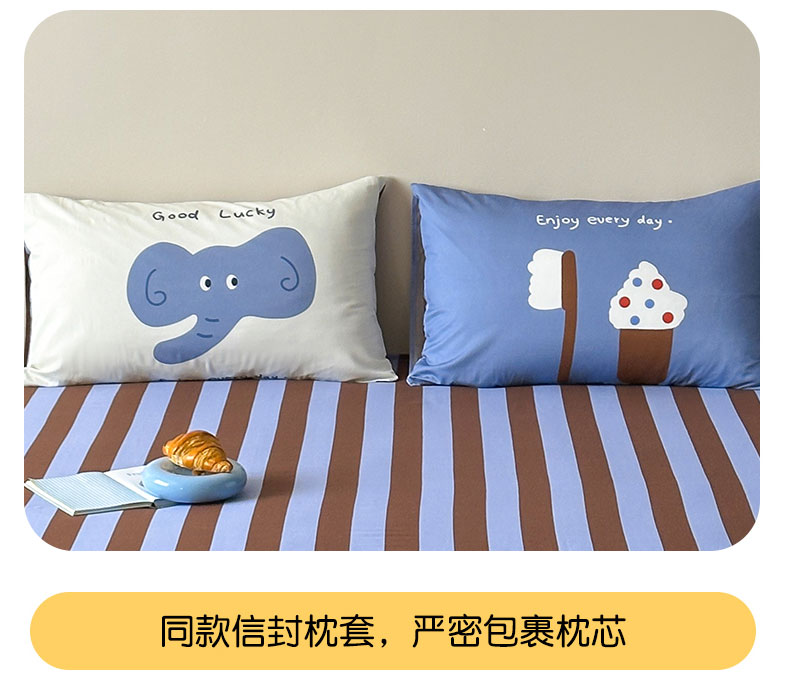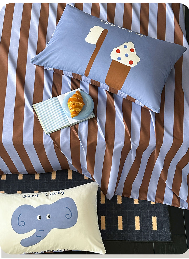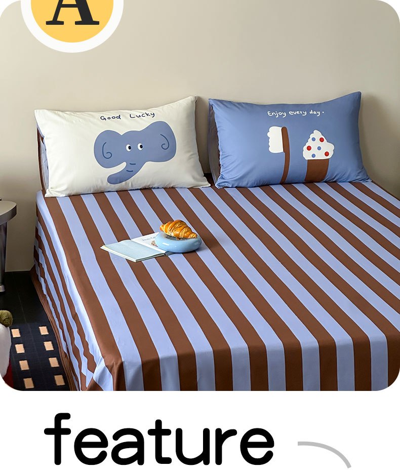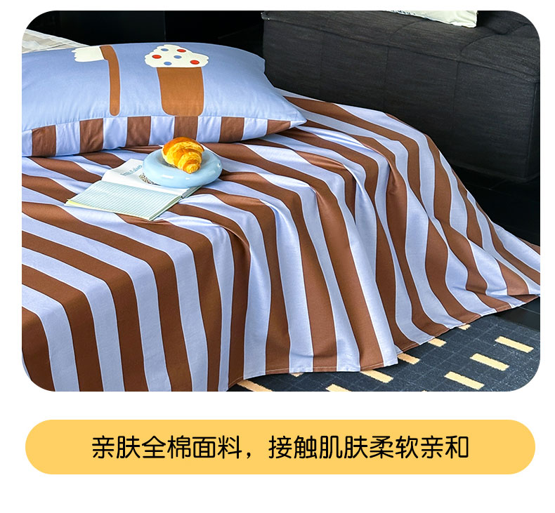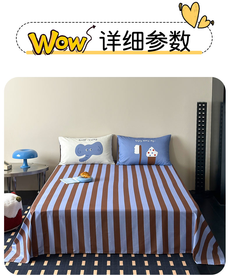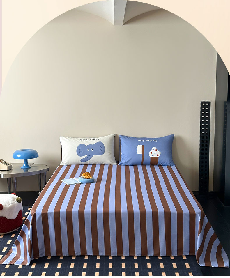 当前位置: 91家纺网 > 商品网购 > 床上用品 > 床单 > 桃子家居 2026新款A类全棉纯棉水洗简约混搭数码印花条纹星纹复古治愈卡通单品床单床笠系列 水洗棉单品床单-蓝棕小甜象