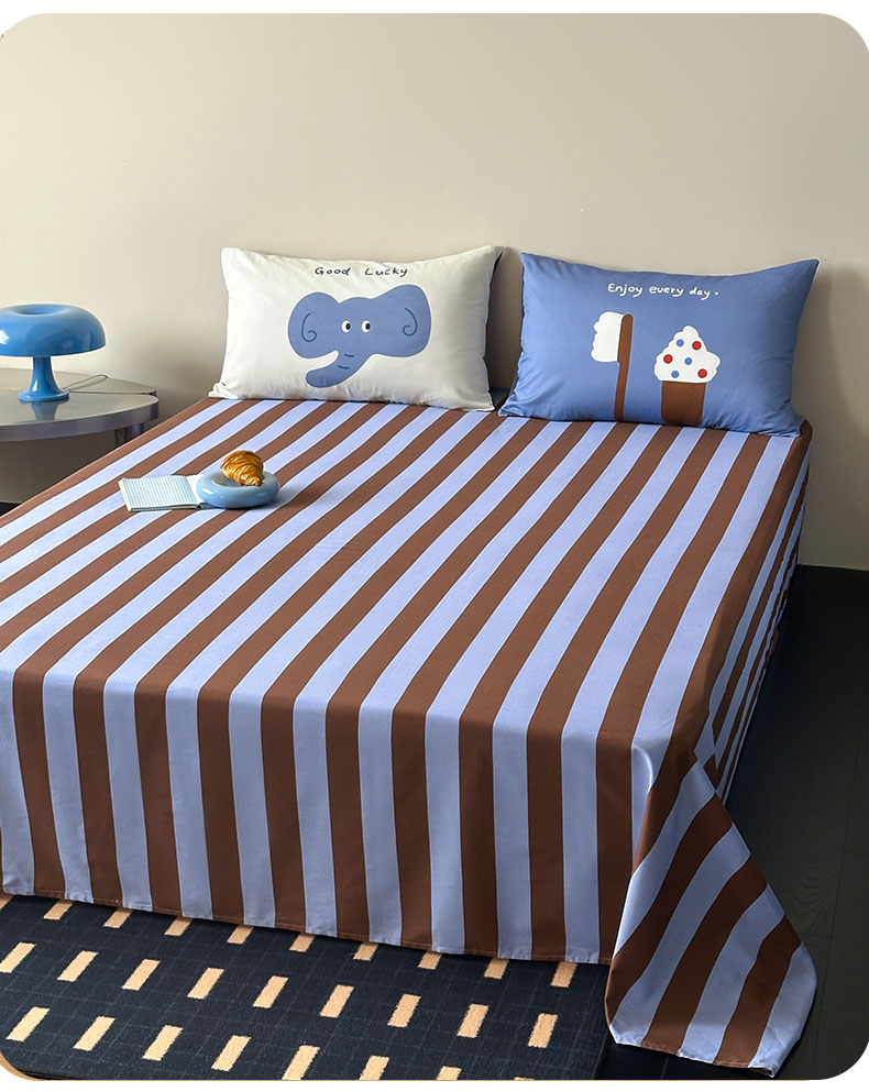 桃子家居 2026新款A类全棉纯棉水洗简约混搭数码印花条纹星纹复古治愈卡通单品床单床笠系列 水洗棉单品床单-蓝棕小甜象