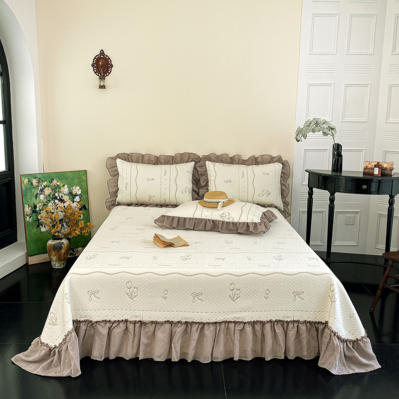 (总)红夫人 2026新款春夏韩版床盖款多功能夏被床盖四件套--花絮,豆沙,淡粉,奶桔色,浅紫,天蓝