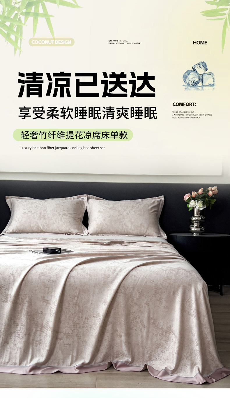 商品名称:印季家纺 2026新款色织提花100%竹纤维床单凉席 雾梦-浅棕茶