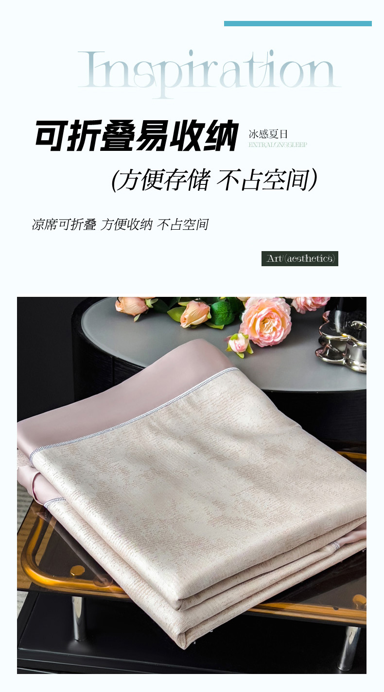 (总)印季家纺 2025新款轻奢简约凉感丝泡泡席-格调凉席,藏蓝,米黄,墨绿,浅粉,银灰