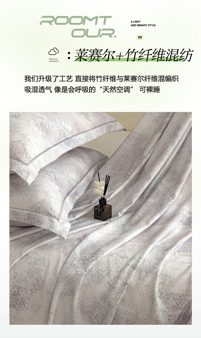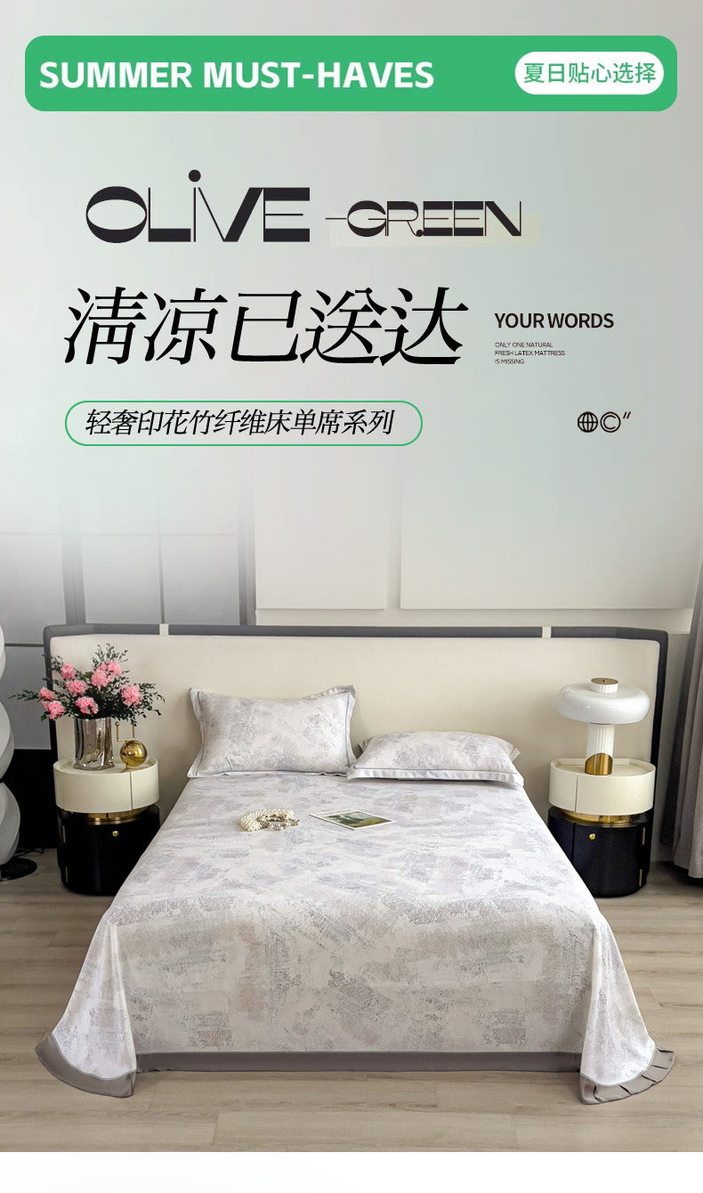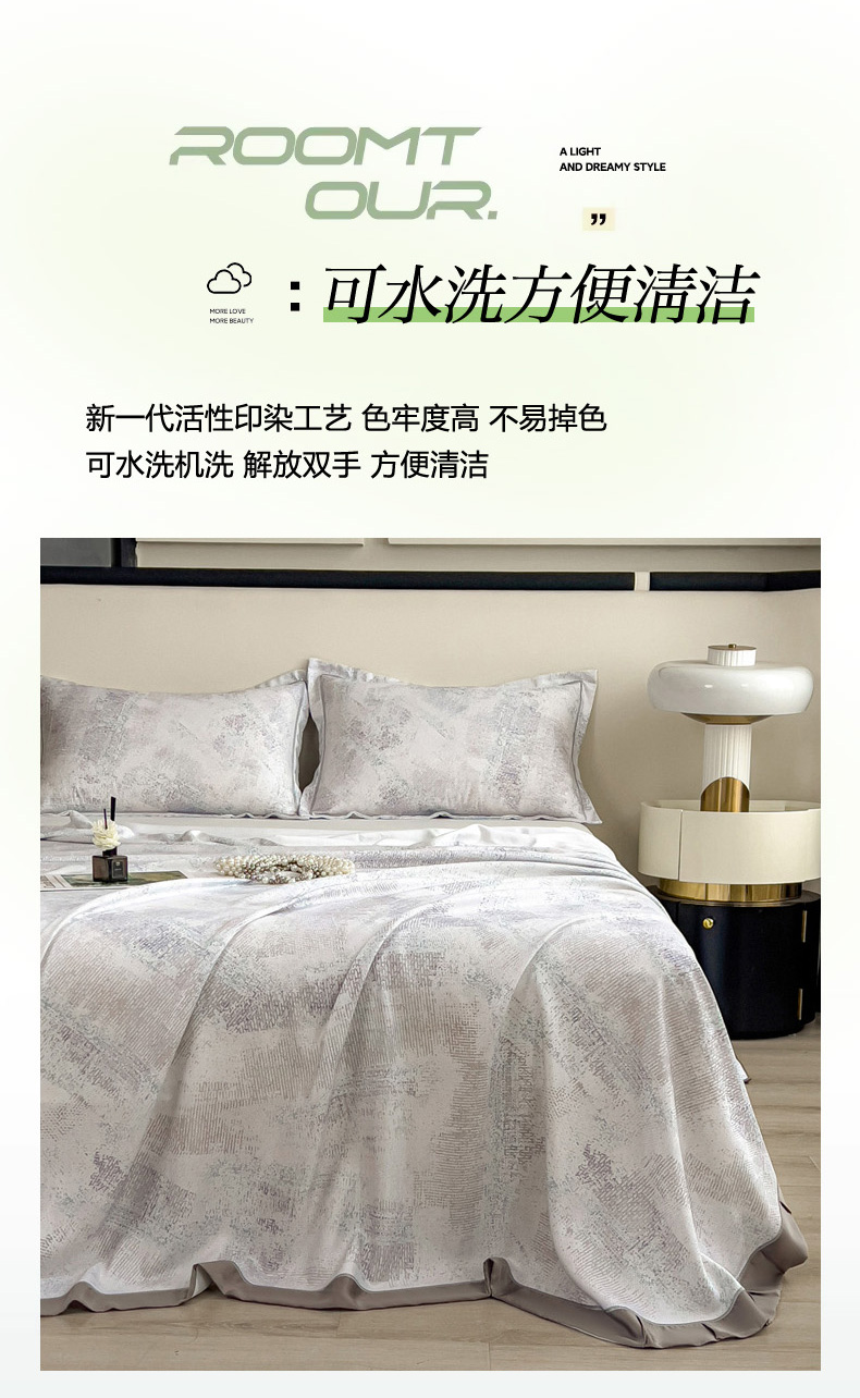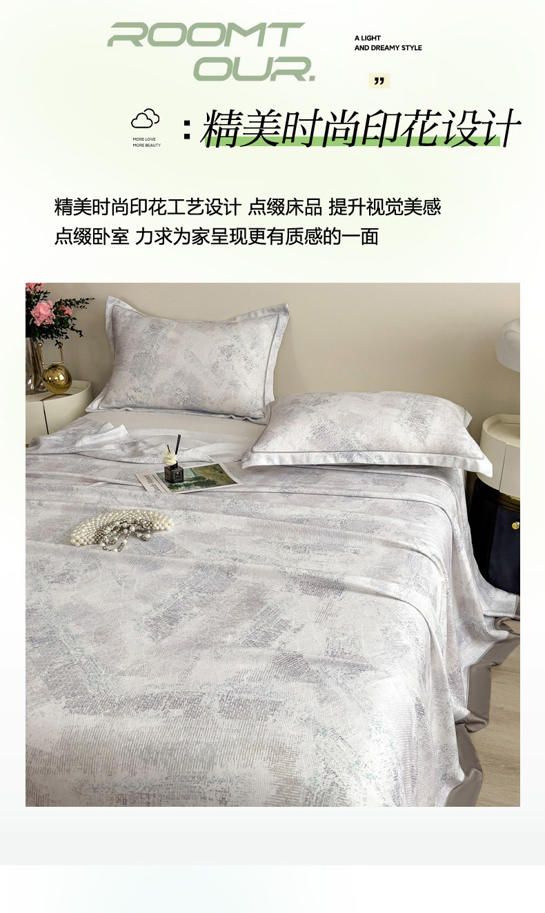 印季家纺 2026新款数码印花竹纤维+莱赛尔床单凉席 情愫-灰