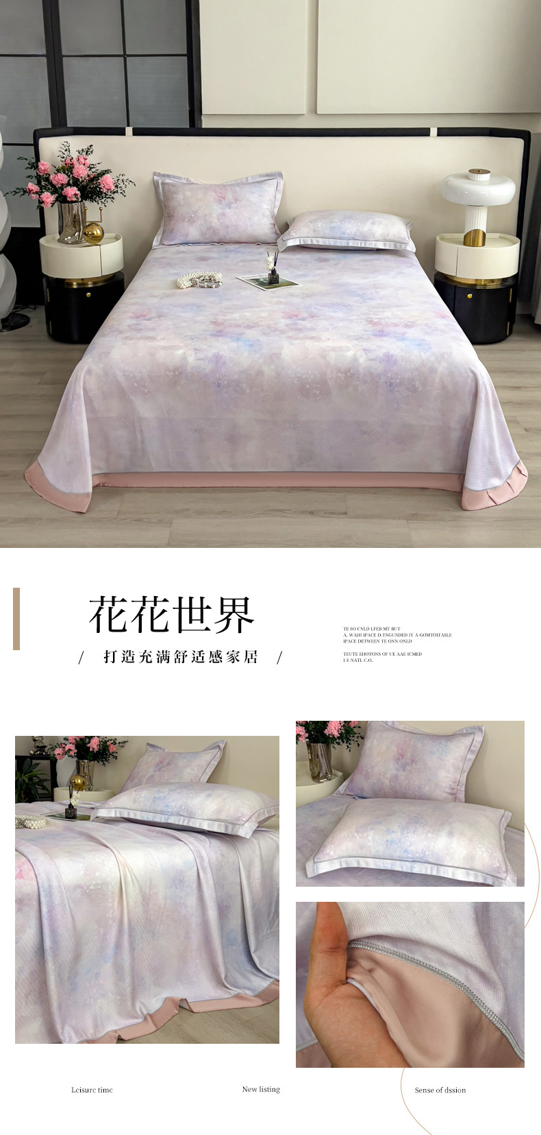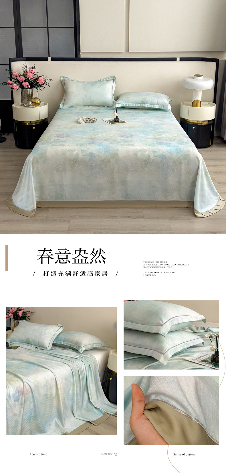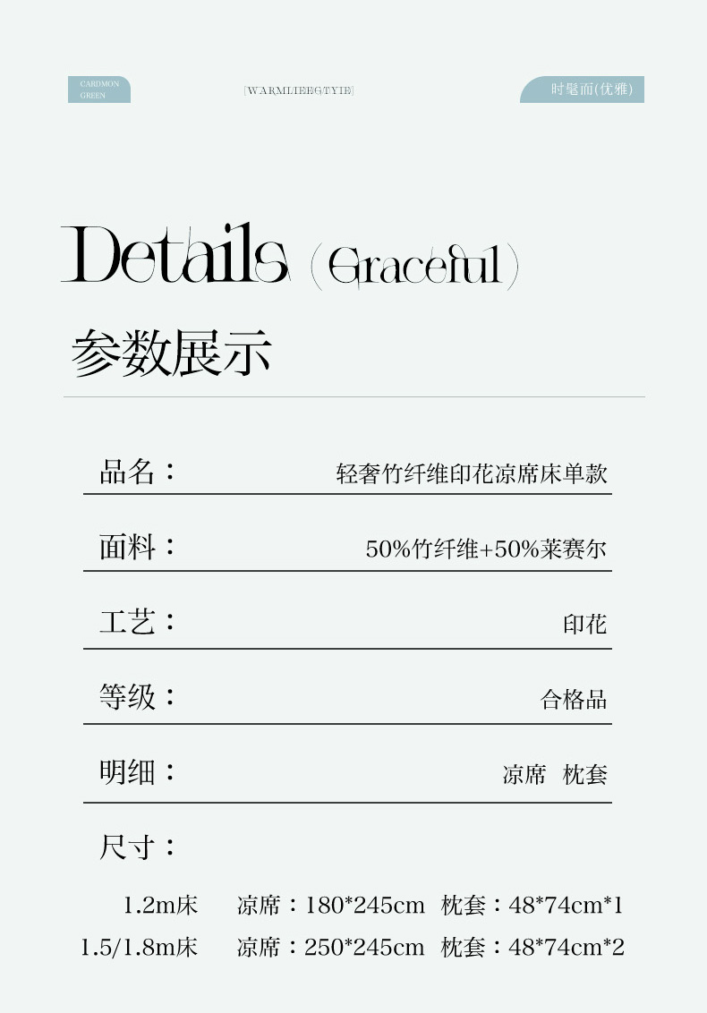 印季家纺 2026新款数码印花竹纤维+莱赛尔床单凉席 情愫-灰