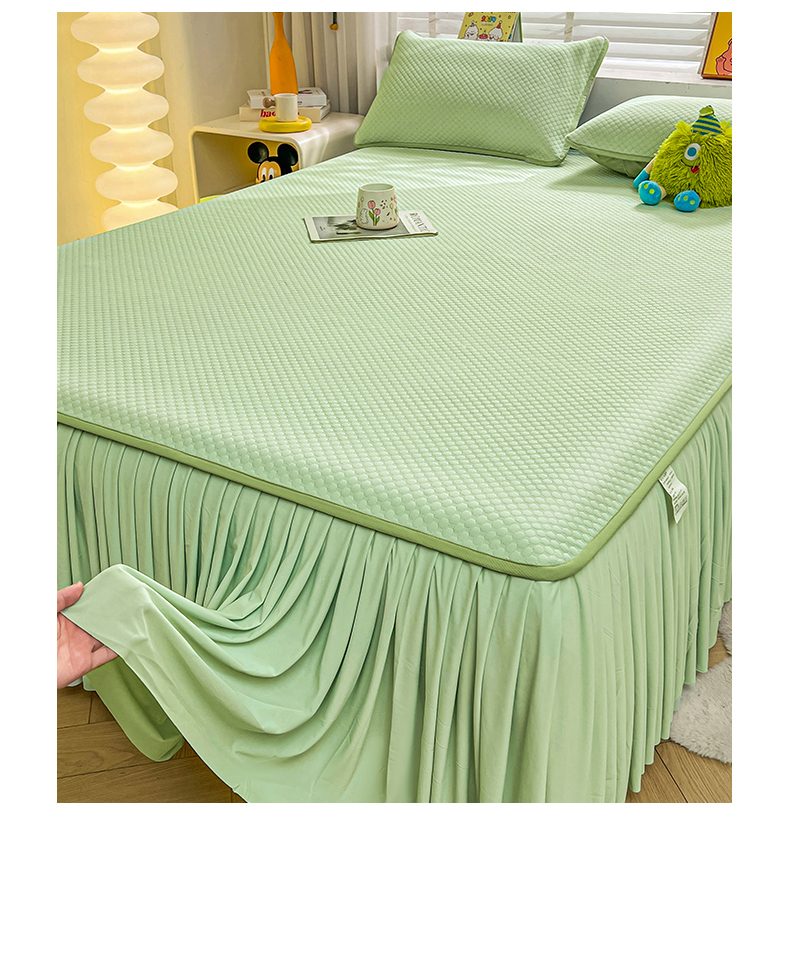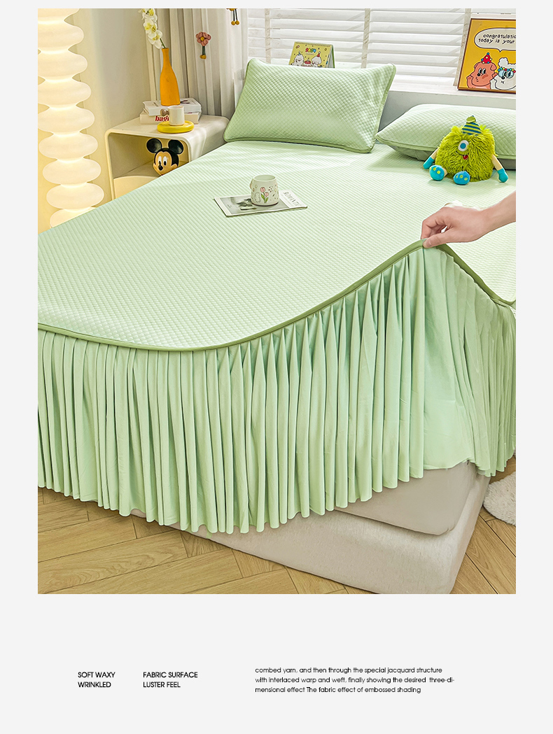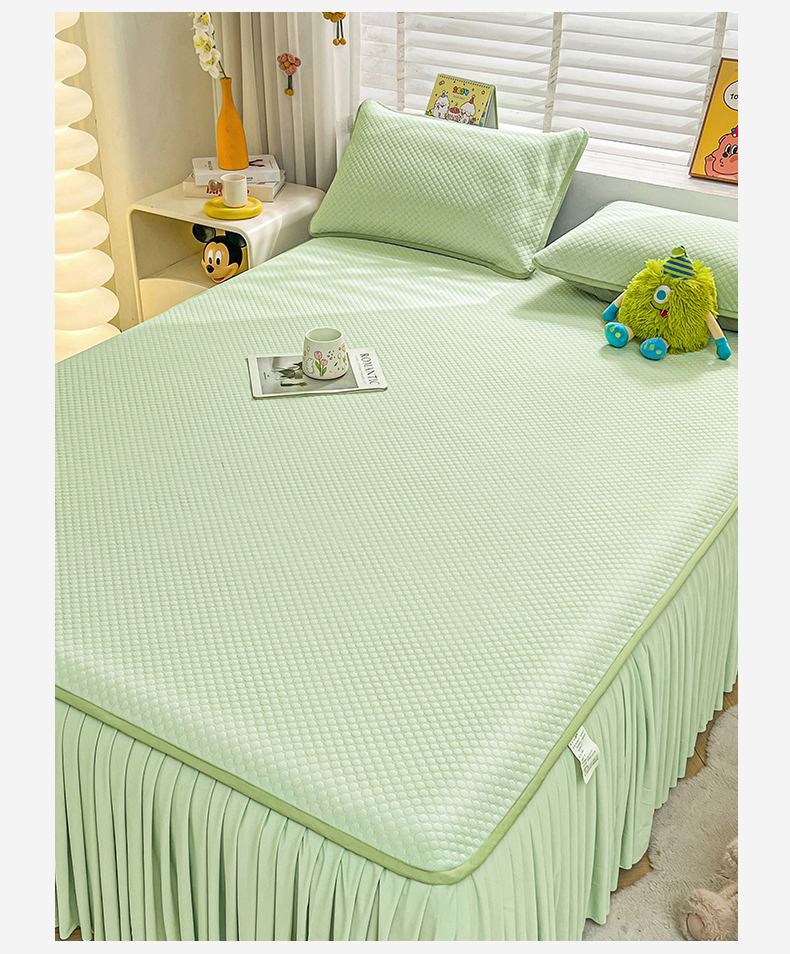 雯豆家纺 2026新款A类凉感丝花边床裙款凉席席子凉席 凉感丝床裙-森林绿