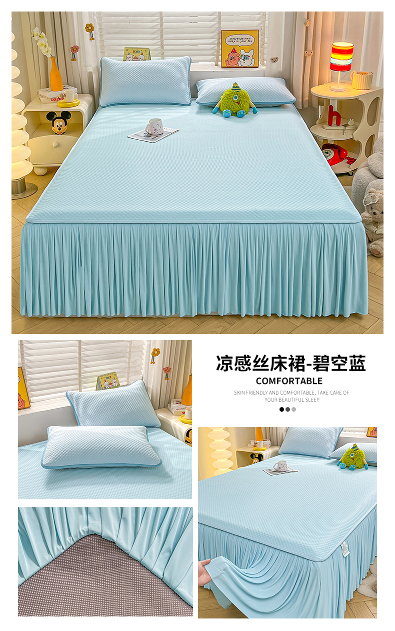• 91家纺网 家纺一手货源 找家纺 (总)雯豆家纺 2026新款A类凉感丝花边床裙款凉席席子凉席,凉感丝床裙-碧空蓝,凉感丝床裙-春辰绿,凉感丝床裙-淡雅灰,凉感丝床裙-轻奢灰,凉感丝床裙-森林绿,凉感丝床裙-胭脂粉