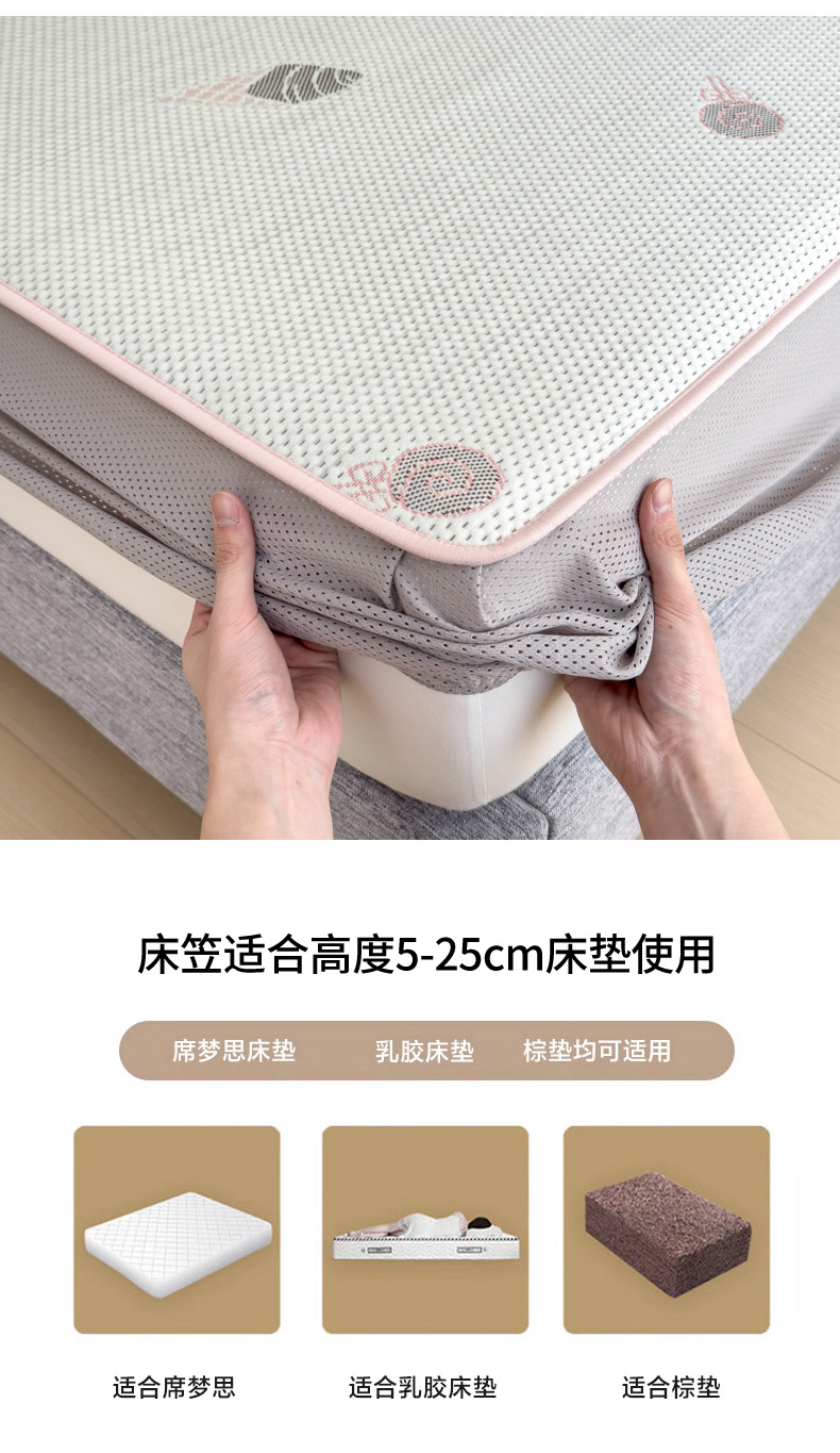 (总)印季家纺 2025新款纯色加密冰藤床裙凉席,粉色,灰色,咖啡,浅紫,水绿,天蓝