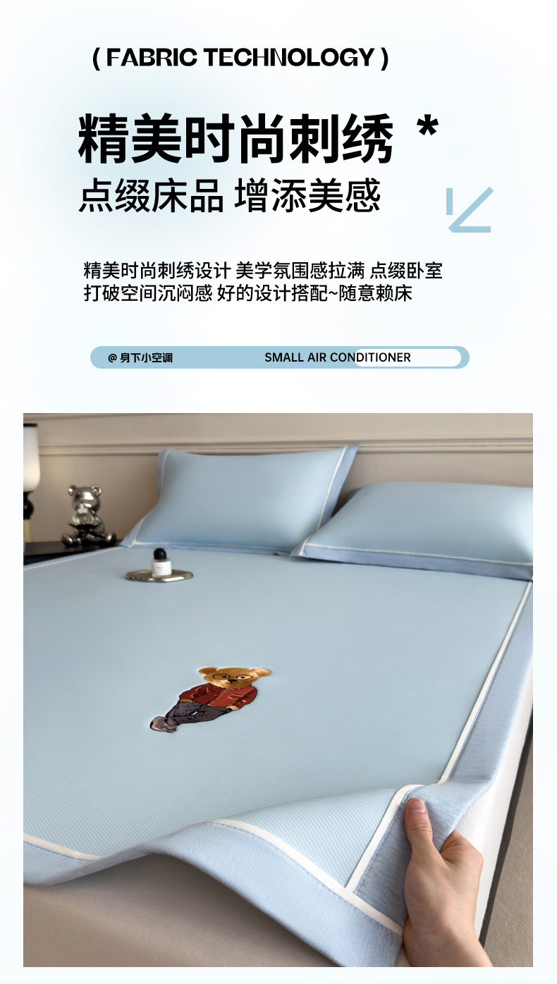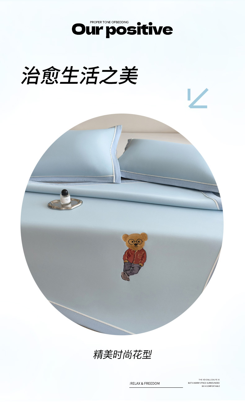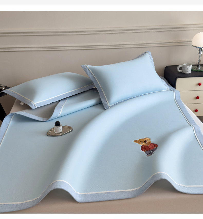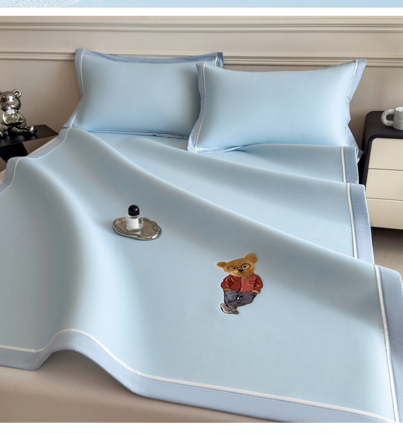 印季家纺 2026新款丝滑凉感绣花软席席子-洛克熊 天蓝