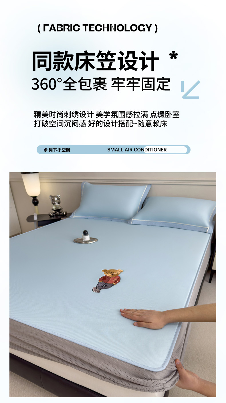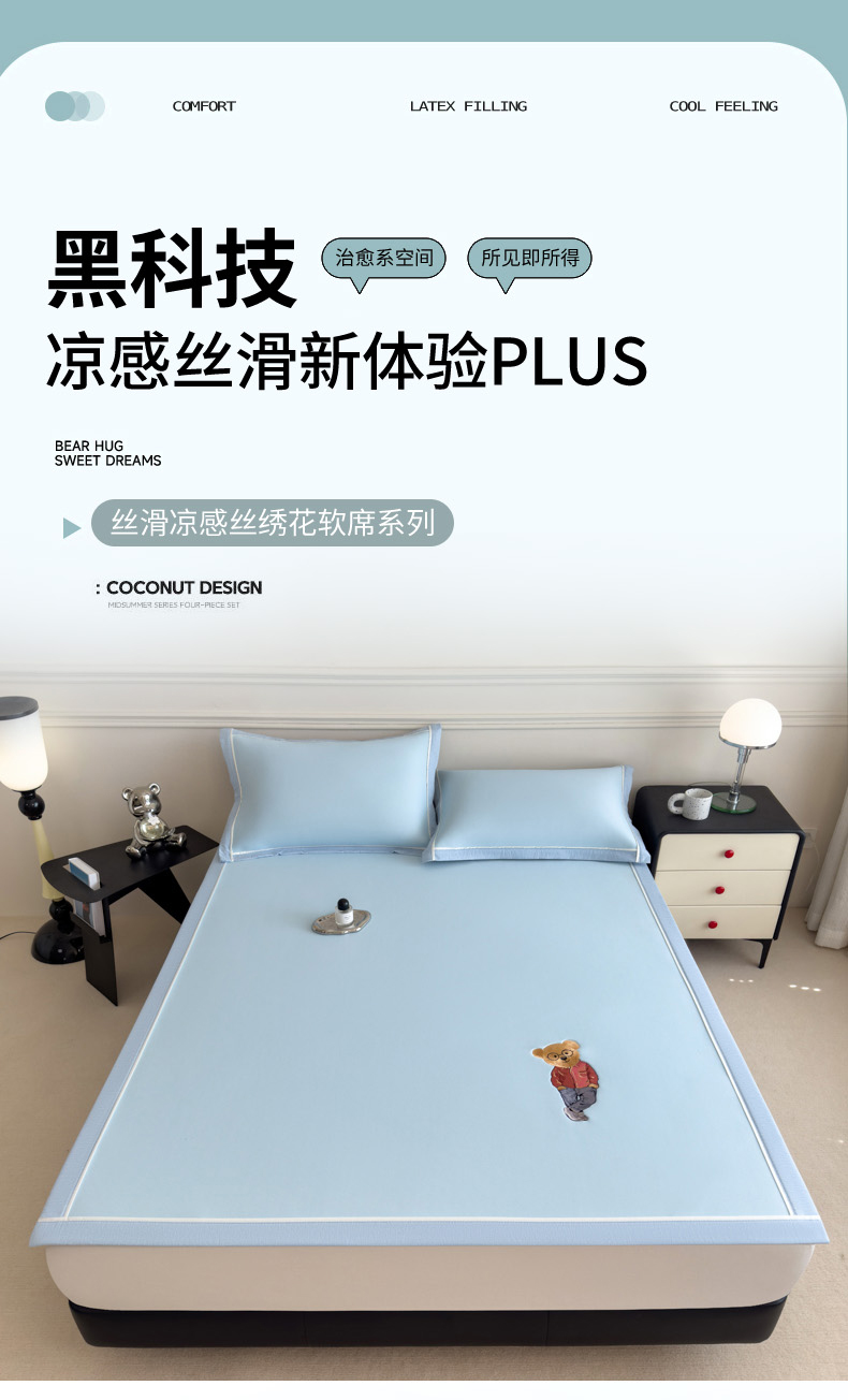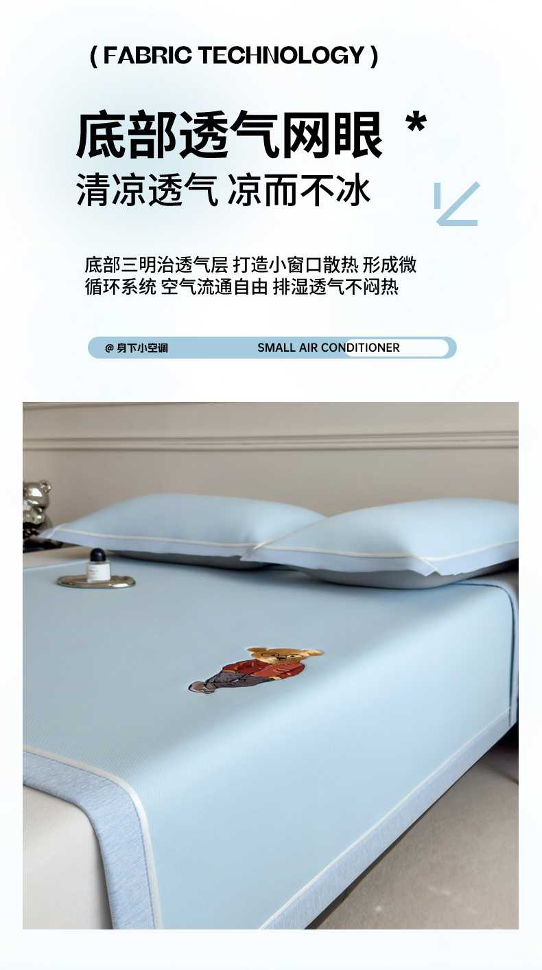 印季家纺 2026新款丝滑凉感绣花软席席子-洛克熊 天蓝
