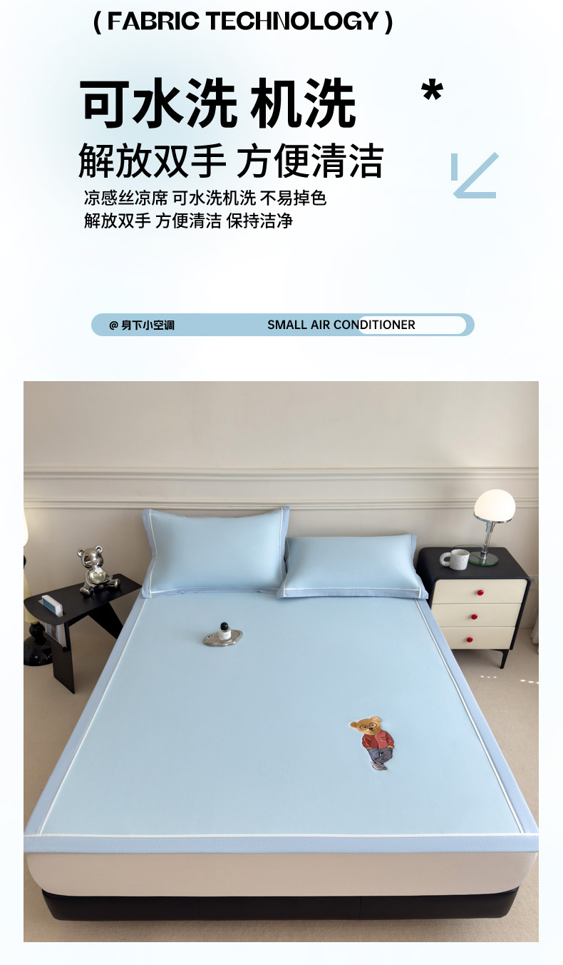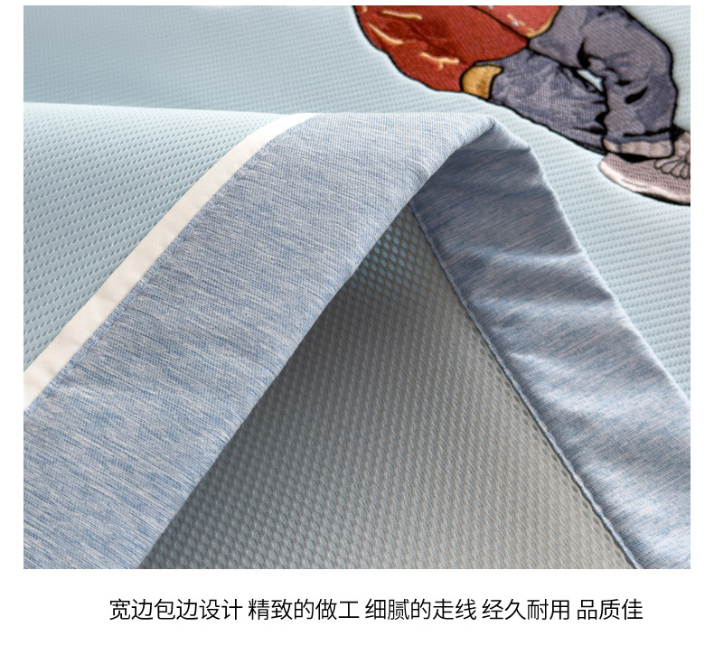 商品名称:印季家纺 2026新款丝滑凉感绣花软席席子-洛克熊 天蓝