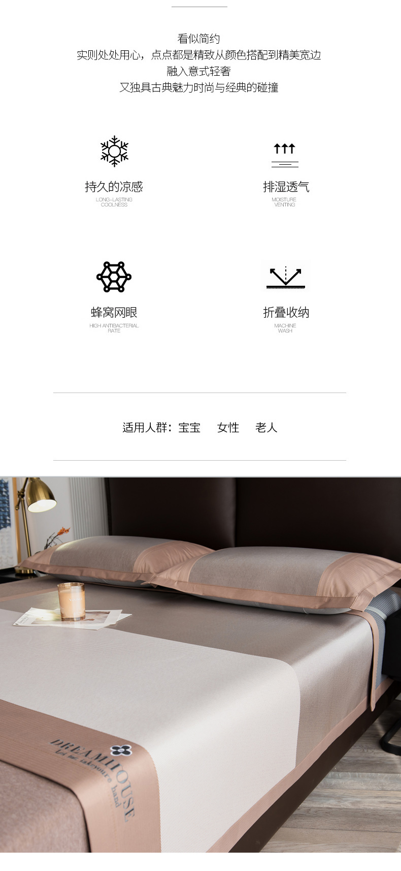(总)印季家纺 2025新款轻奢简约凉感丝泡泡席-格调凉席,藏蓝,米黄,墨绿,浅粉,银灰