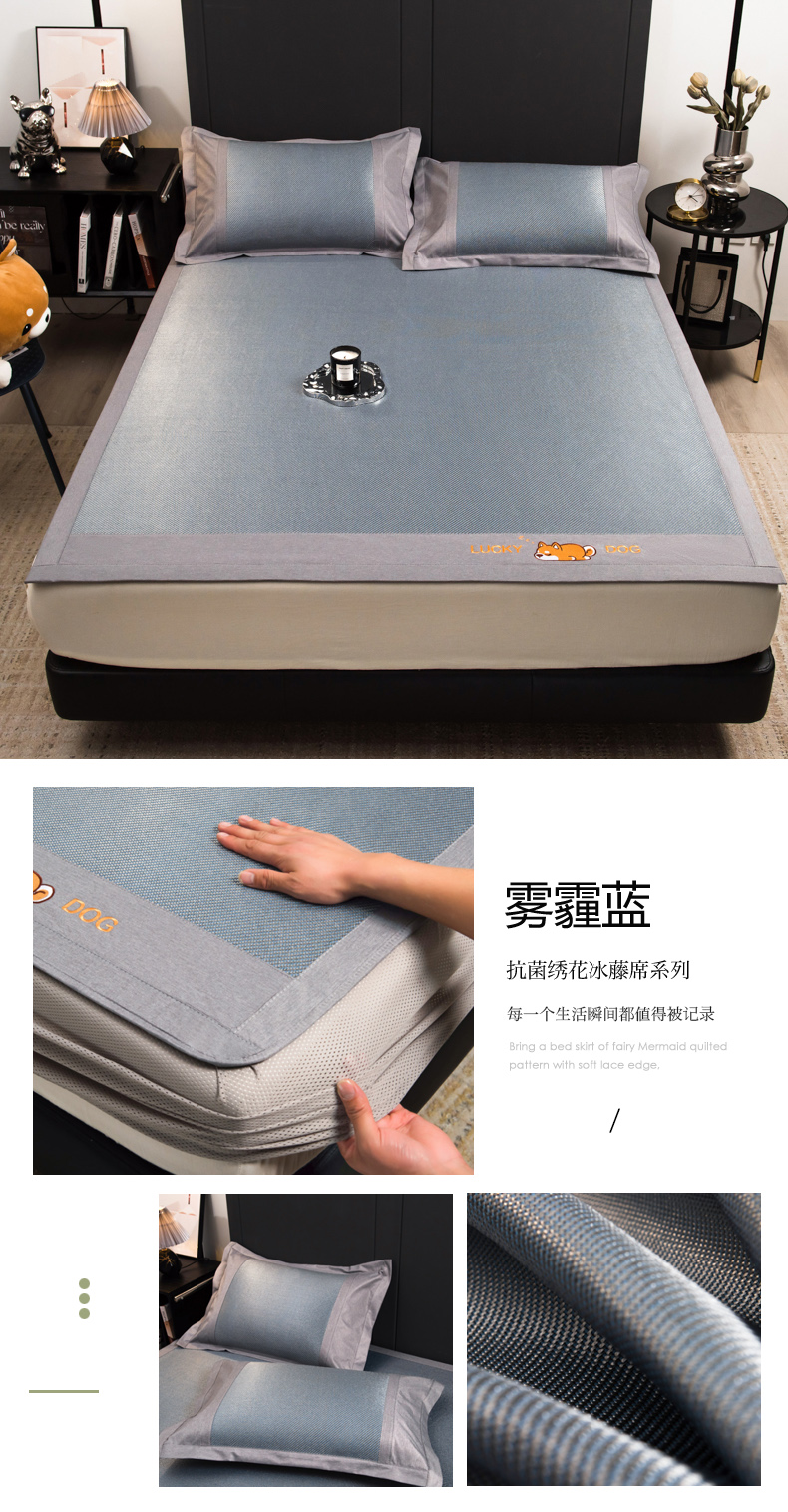 当前位置: 91家纺网 > 商品网购 > 床上用品 > 凉席 > 其他凉席 > 印季家纺 2026新款5A级抗菌加厚绣花冰藤席-幸运狗(床笠款) 湖绿