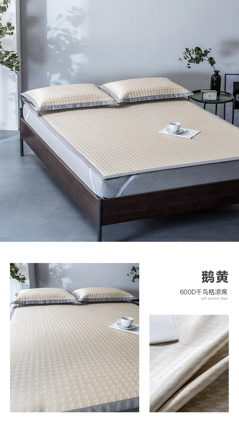印季家纺 2026新款600D千鸟格席子凉席 鹅黄