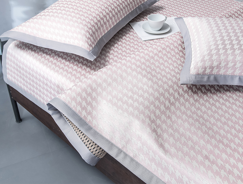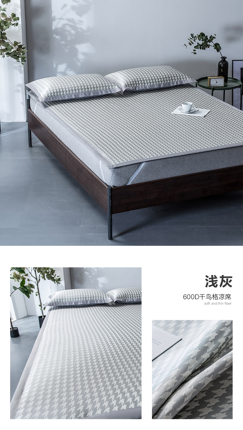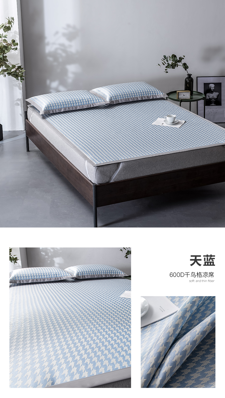 (总)印季家纺 2026新款600D千鸟格席子凉席,豆沙,鹅黄,浅灰,天蓝