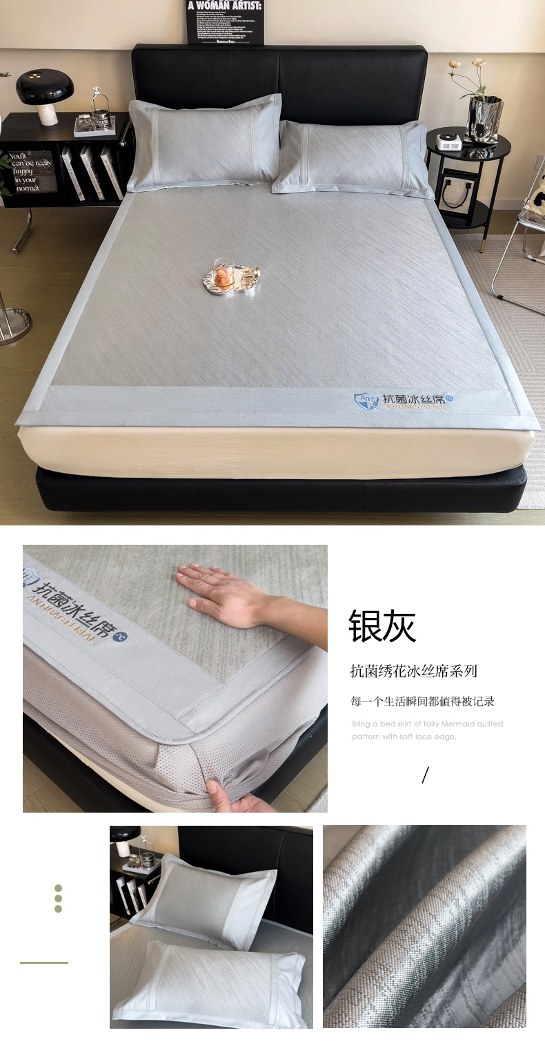 (总)印季 2025新款5A级抗菌加厚绣花冰丝席-流星雨,豆沙,灰咖,天蓝,蓝灰,水绿,银灰