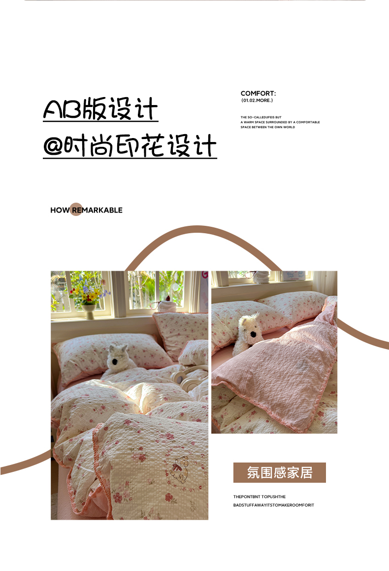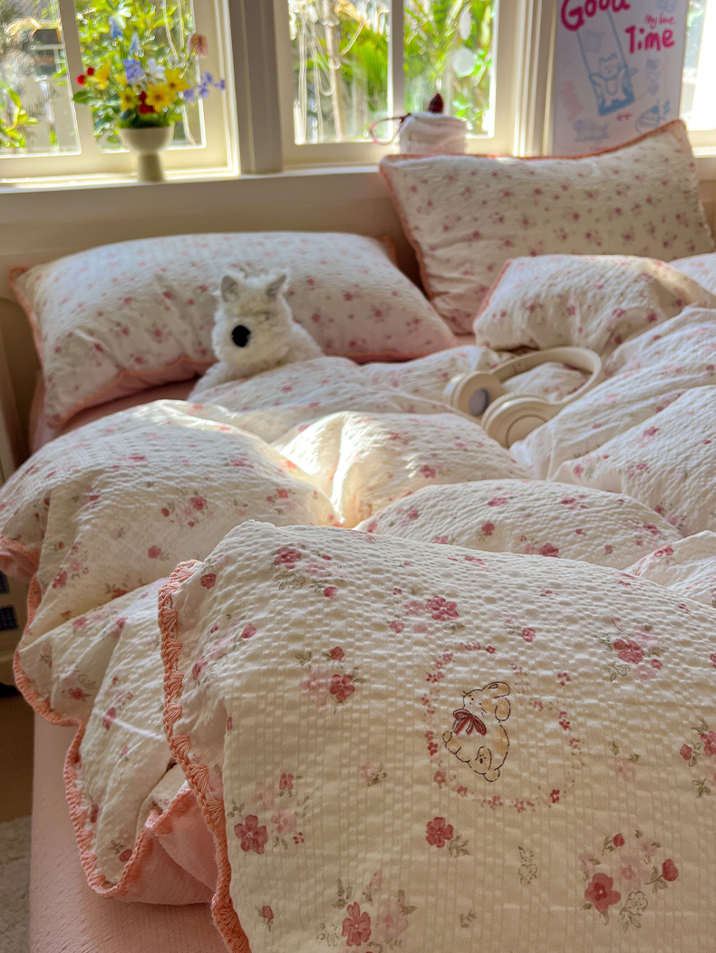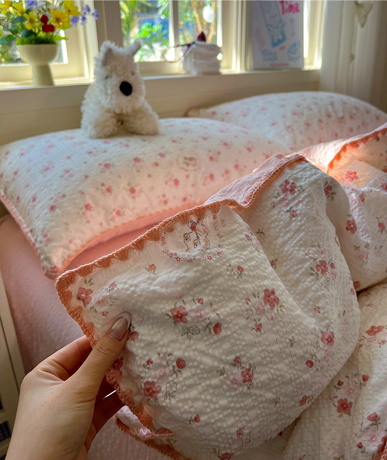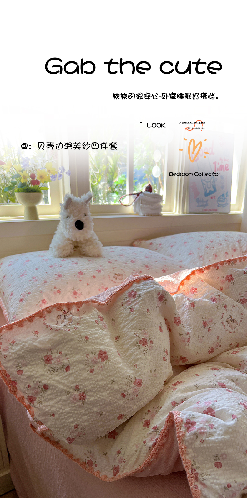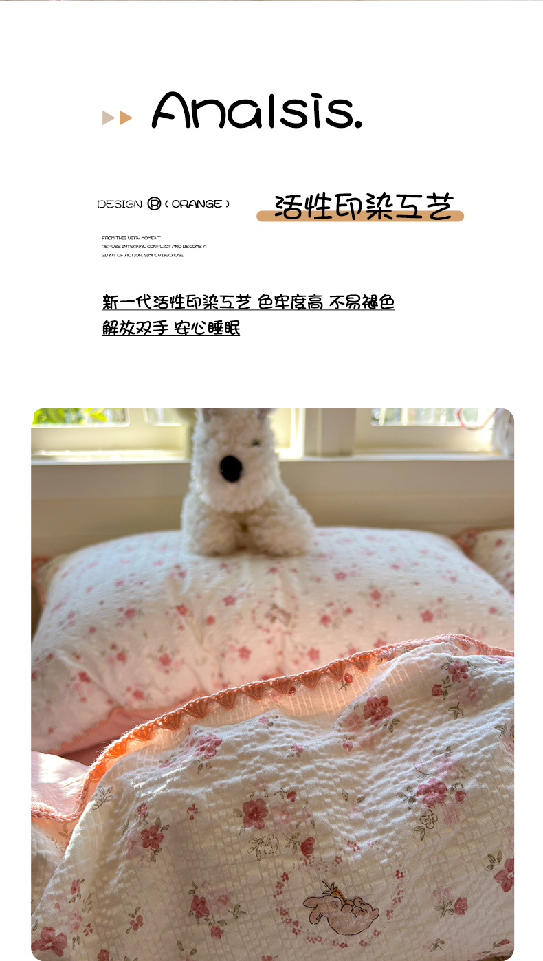 当前位置: 91家纺网 > 商品网购 > 床品套件 > 四件套 > 其它四件套 > 水墨江南 2026新款贝壳边泡芙纱时尚印花四件套 粉黛小兔