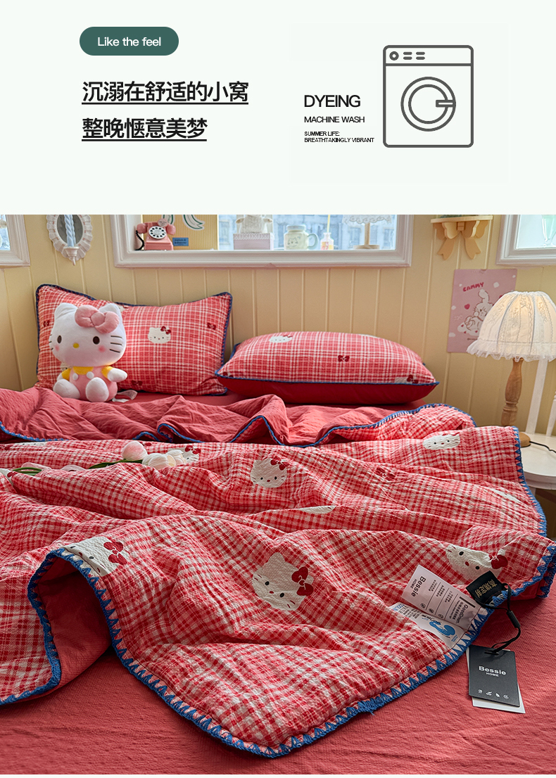 (总)初念 2026新款云感纱印花四件套,礼物KT,冰激凌派对,冰蓝凯蒂,红心凯蒂,花间KT,凯蒂粉小格,凯蒂星碎,凯蒂养鱼,凯蒂养鱼蓝,马卡龙乐蒂,美乐蒂邮册,棋盘粉KT,软萌方块乐蒂,小怪库洛米,幸运符号红,幸运符号蓝