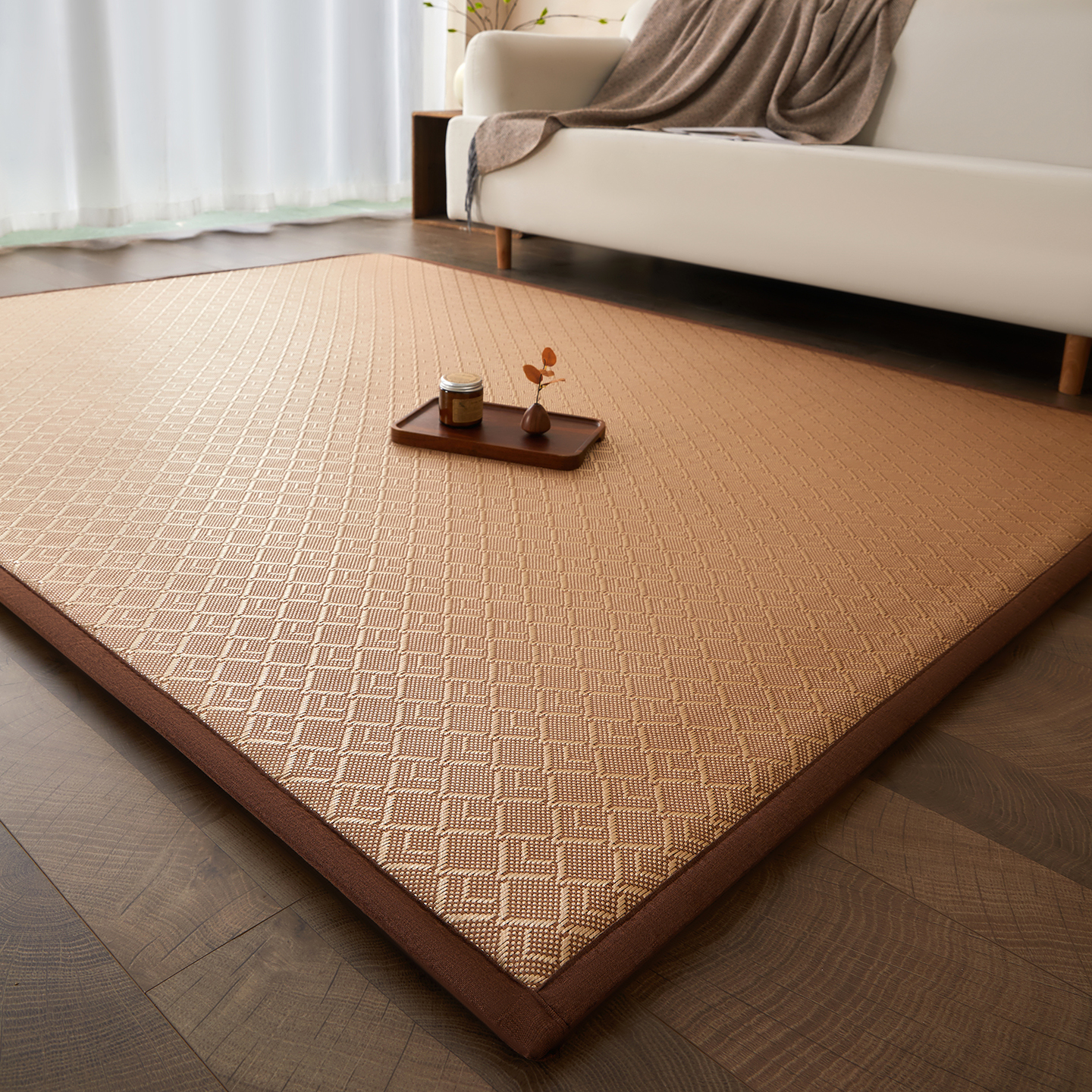 (总)航途席业 2026新款拼接格榻榻米地垫,白玉藤,饼干花,古奢藤,九宫格,绿饼干