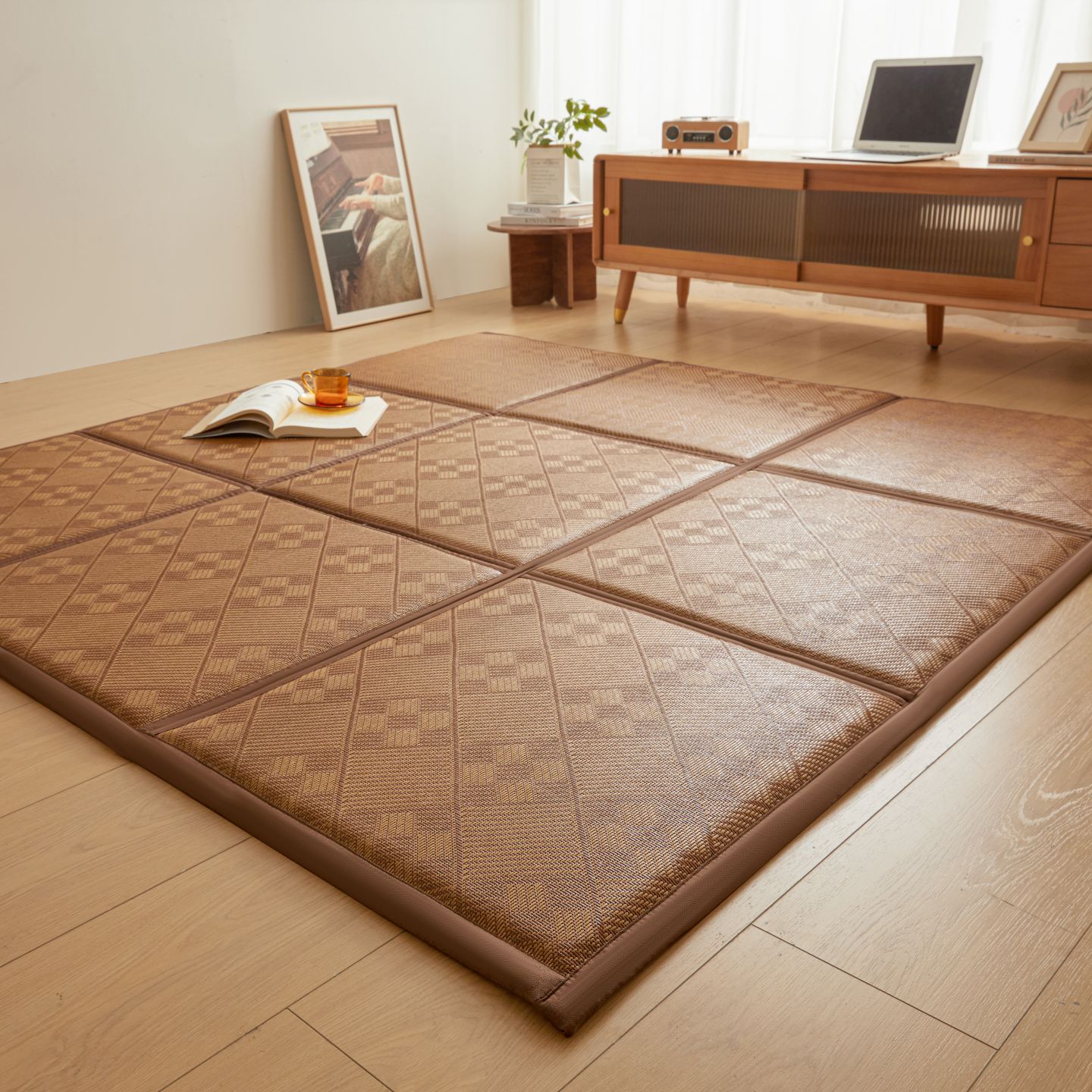 航途席业 2026新款拼接格榻榻米地垫 白玉藤