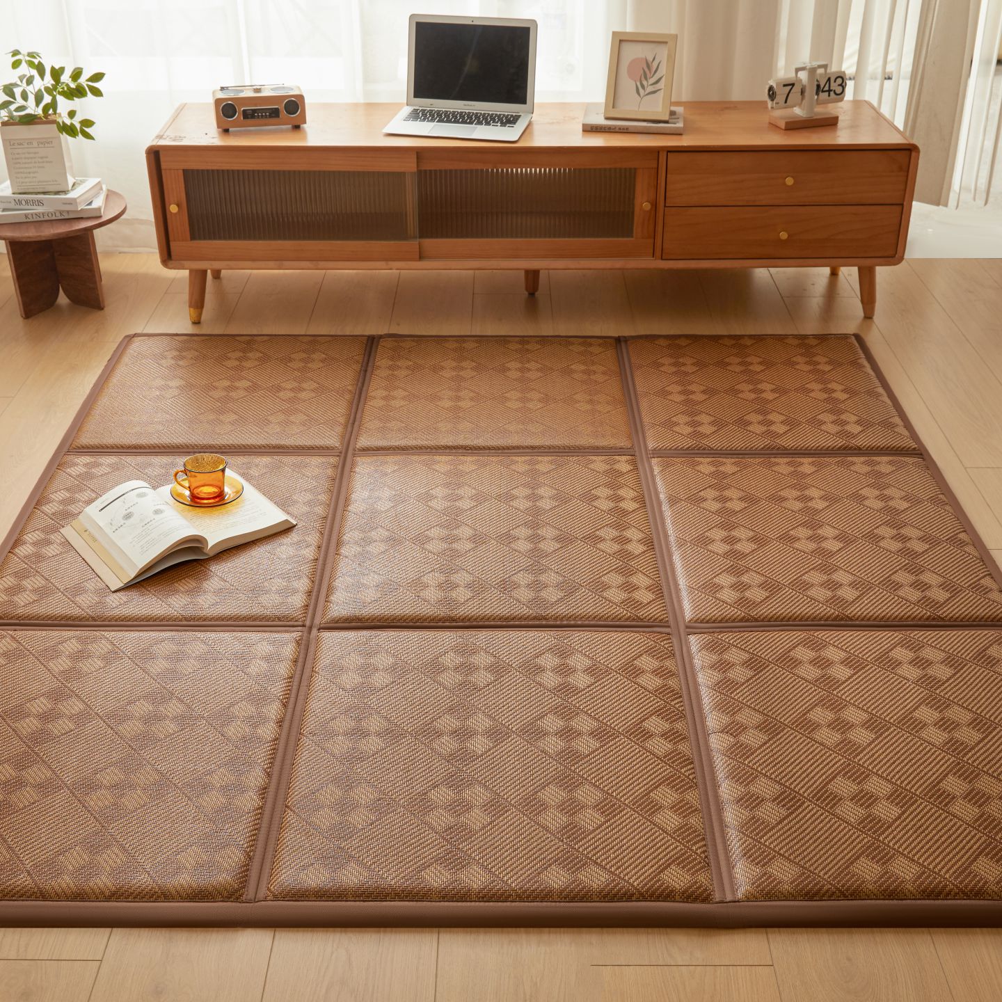 • 91家纺网 家纺一手货源 找家纺 航途席业 2026新款拼接格榻榻米地垫 白玉藤