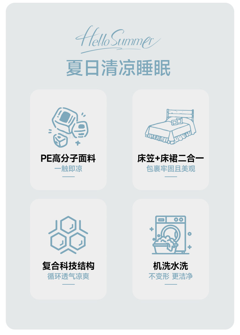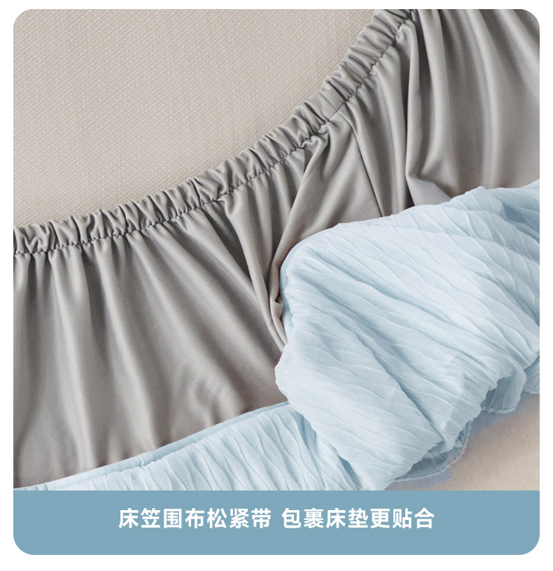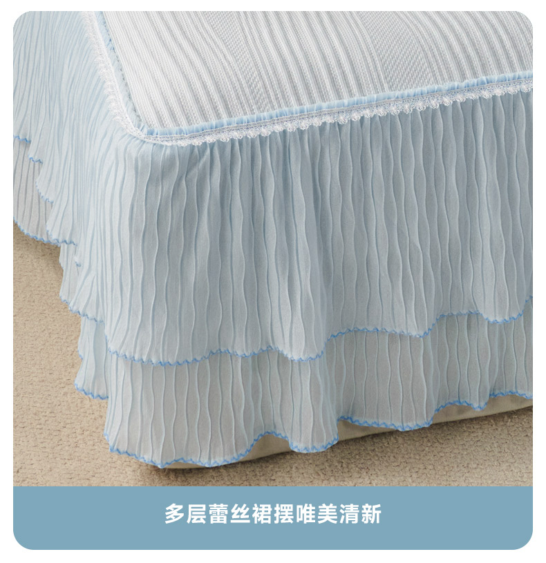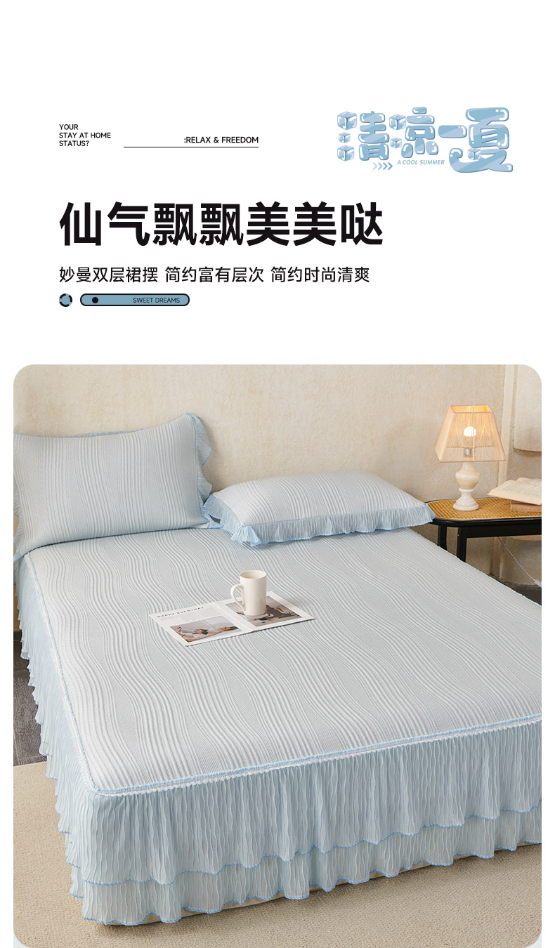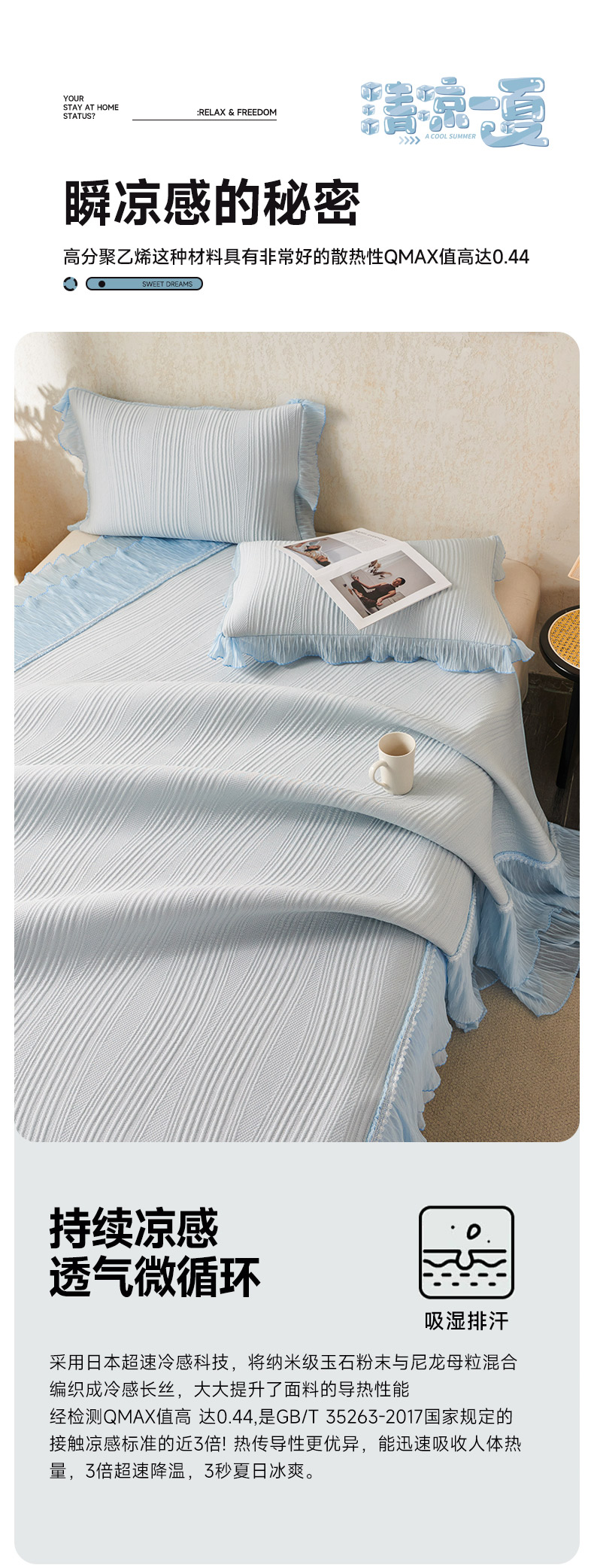 (总)桂雅居 2026新款高分子冰感蕾丝床裙床笠款凉席三件套,浅夏桃风,清氧浅绿,柔雾奶咖,素影灰纱,云漫冰蓝