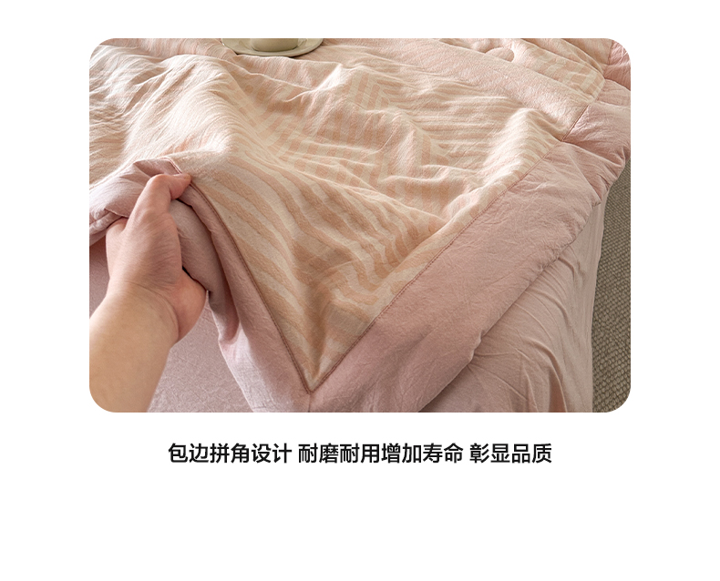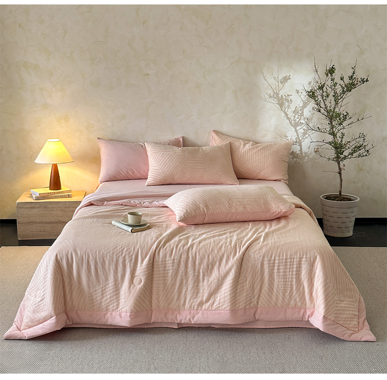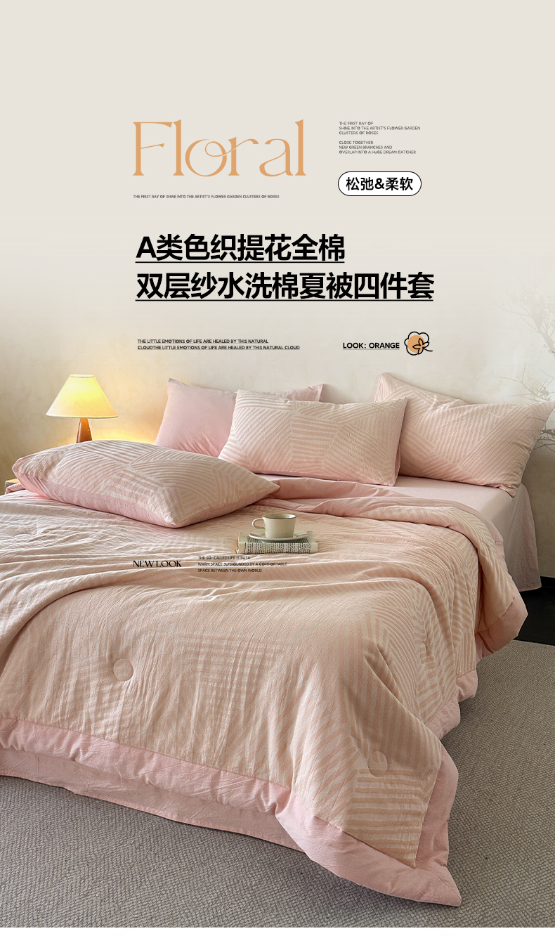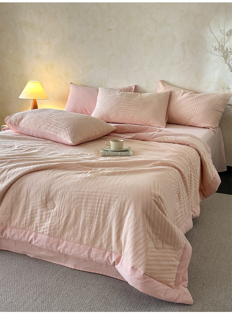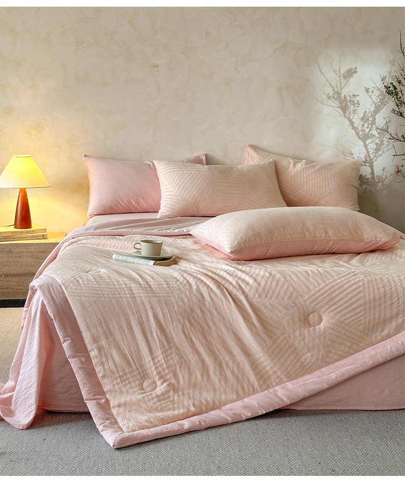 当前位置: 91家纺网 > 商品网购 > 床品套件 > 四件套 > 夏被四件套 > 如一 2026新款A类色织提花全棉双层纱水洗棉夏被夏凉被空调被四件套 序章粉