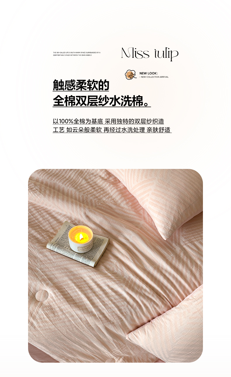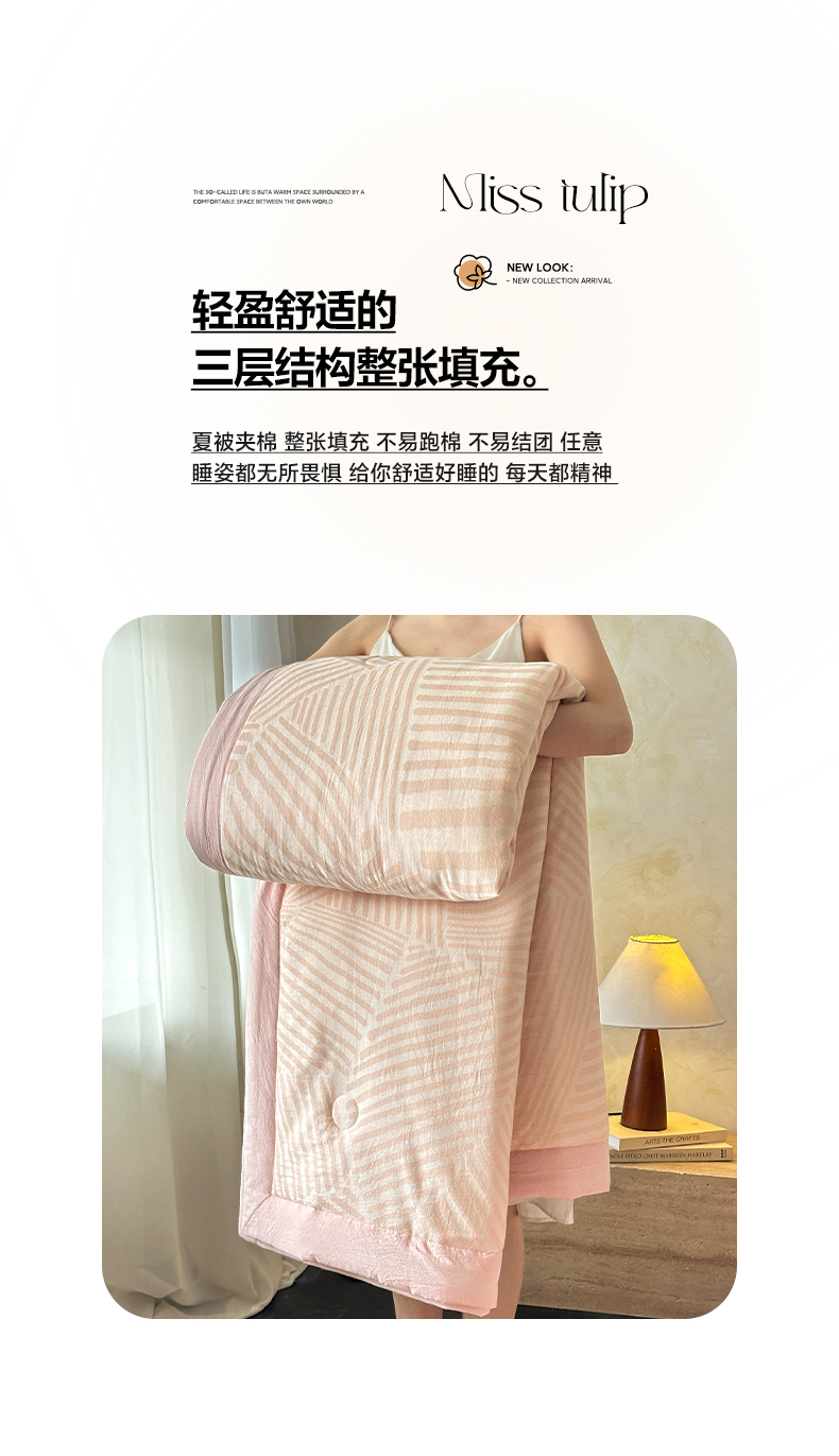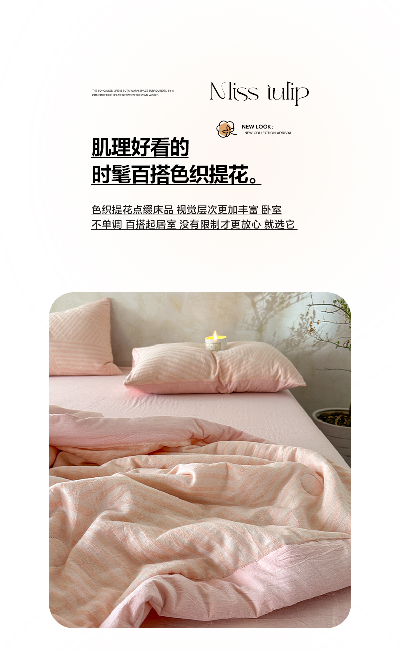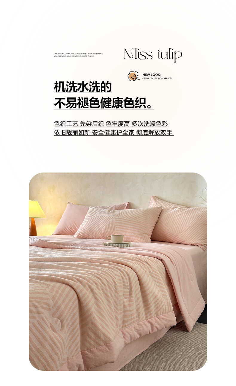 当前位置: 91家纺网 > 商品网购 > 床品套件 > 四件套 > 夏被四件套 > 如一 2026新款A类色织提花全棉双层纱水洗棉夏被夏凉被空调被四件套 序章粉