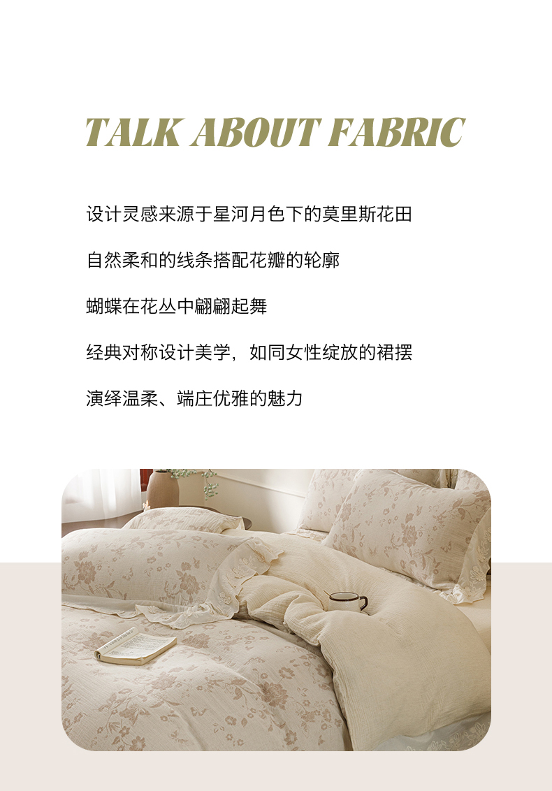 (总)瑞米家居 2025新款A类棉麻提花花边款四件套-蝶恋花,蝶恋花-粉色,蝶恋花-红咖,蝶恋花-芥末绿,蝶恋花-米色,蝶恋花-中灰