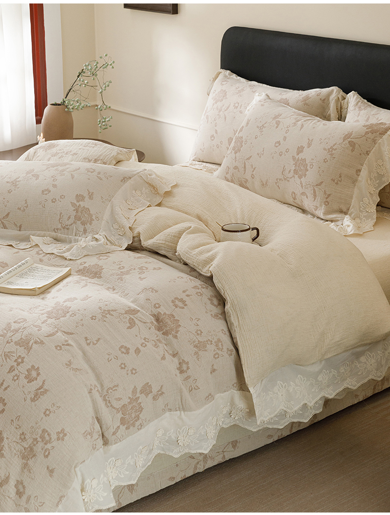 (总)瑞米家居 2026新款A类棉麻提花花边款四件套-翩然乐语,翩然乐语-粉,翩然乐语-红咖,翩然乐语-芥末绿,翩然乐语-深灰