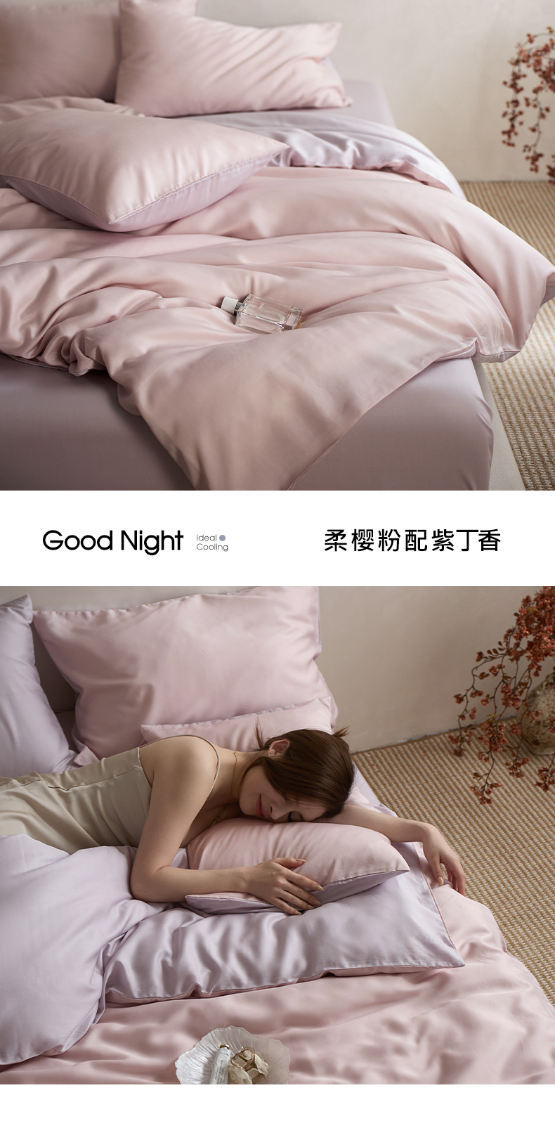 当前位置: 91家纺网 > 商品网购 > 床品套件 > 四件套 > 莱赛尔四件套 > 千朵森 2026新款50S素色双拼莱塞尔夏凉四件套 柔樱粉配紫丁香