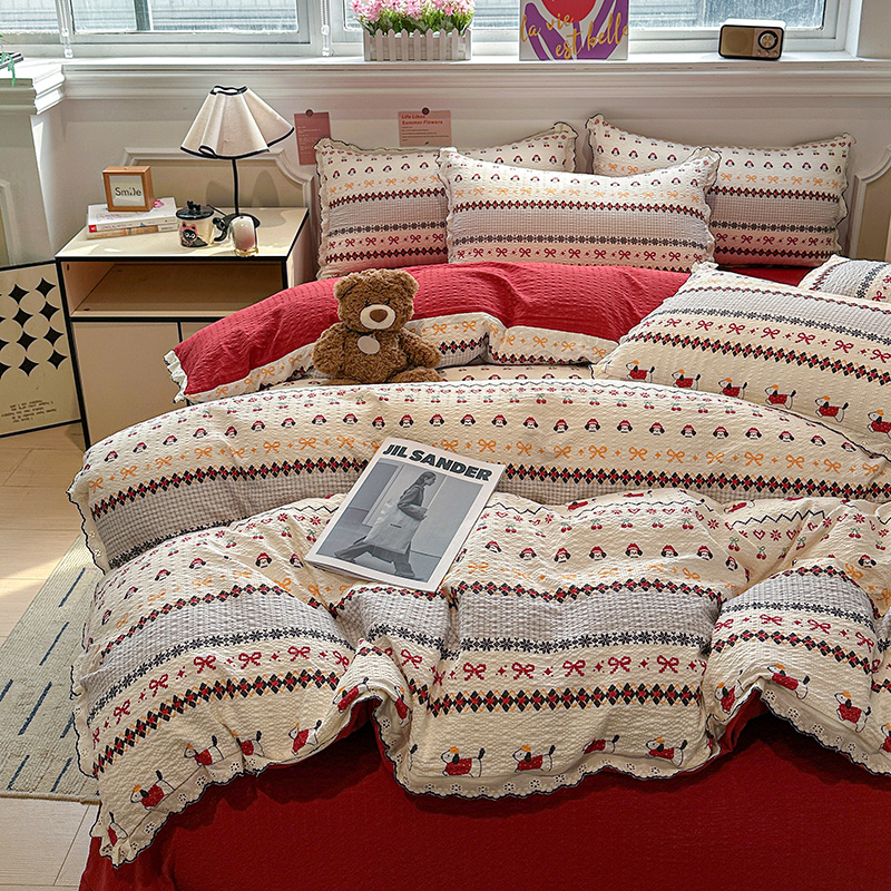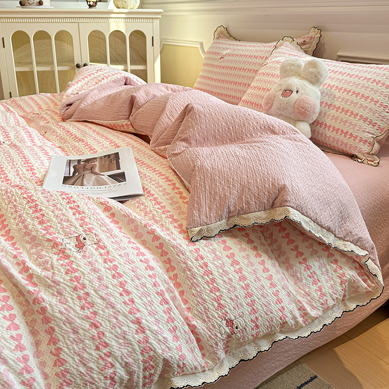 (总)仟网汇 2026新款云感皱皱双层纱全棉花边四件套,初心黄,粉豹纹,格子樱桃,焦糖小马,山茶花,小南瓜,星星人,百福蓝,薄荷微凉,春风里,春晓,豆蔻,蝴蝶梦,可颂,兰黛,山野栀子,素颜,太妃糖,心动,遇见,芝士奶酪,紫爱心,紫苏,组合图,白茶-绿,初恋,花园兔,蜡笔画,莱茵河畔,桃花诺,小黑兔