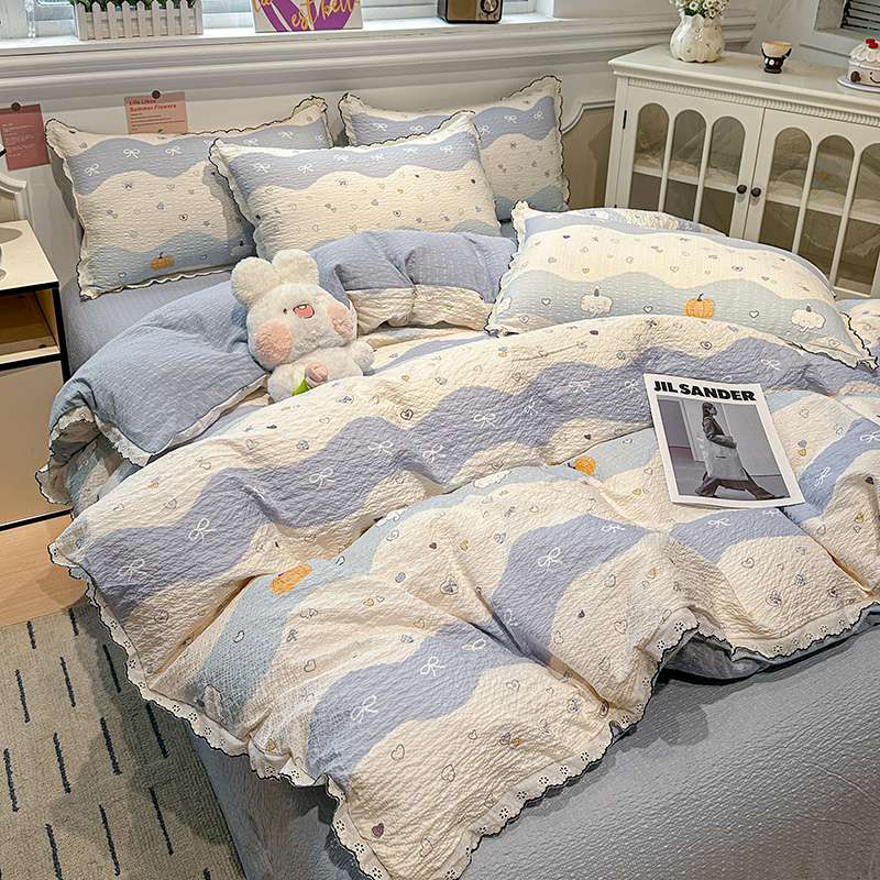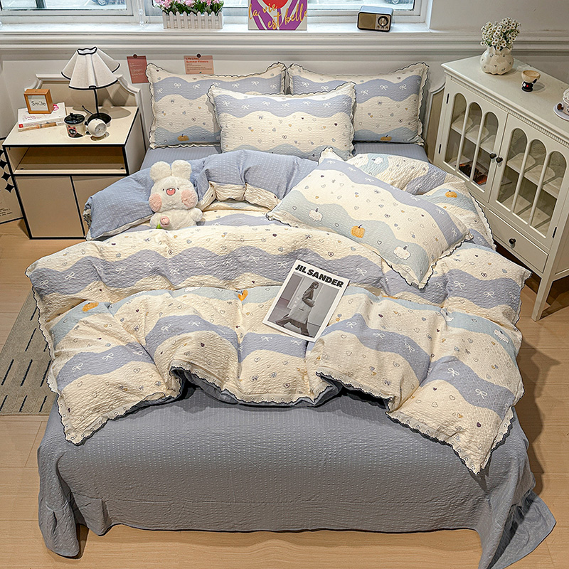 (总)2026新款云感皱皱纱全棉花边款夏被四件套,百福兰,春天里,春晓,豆蔻,蝴蝶梦,可颂,兰黛,山野栀子,素颜,太妃糖,微凉薄荷,心动,遇见,芝士奶酪,紫爱心,紫苏,白茶绿,初恋,蜡笔画,莱茵河畔,桃花诺,小黑兔,春不晚,春日小熊,可颂,陌上花开,莫奈,若欢-绿,若欢紫色,舒芙蕾,田园拾趣-黄,兔小姐,郁金香小兔,波点小兔粉,波点小兔兰,花园兔,情人节,山野栀子,十里桃花粉,十里桃花紫,舒芙蕾,太妃糖,夏天,运动健将熊, 白月光,缤纷几何,格格西高地,海盐蓝小格,黎漫,木槿绿,奶油泡芙,欧若拉,桃夭,甜茶,小晴天,芋泥紫小格,紫色蝴蝶结