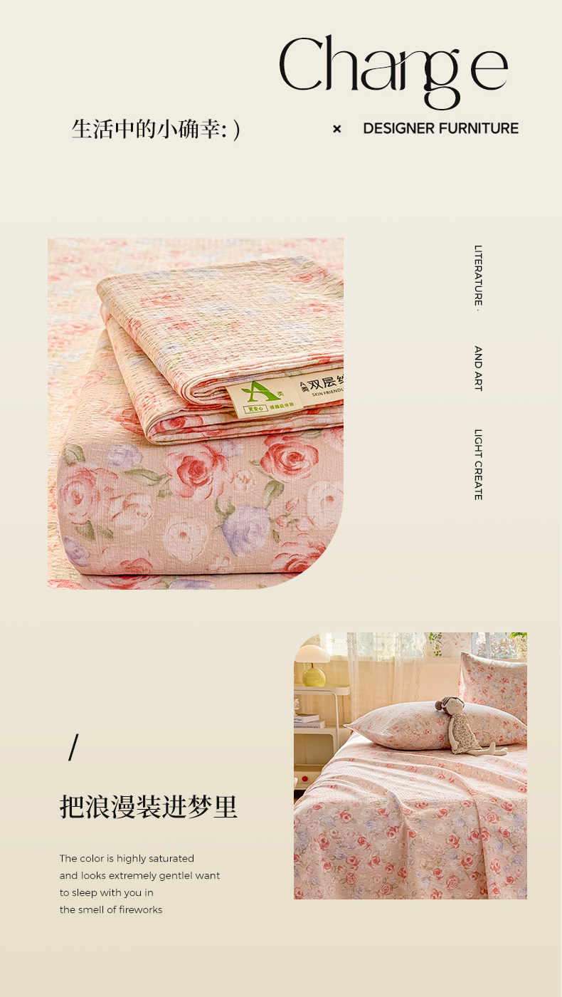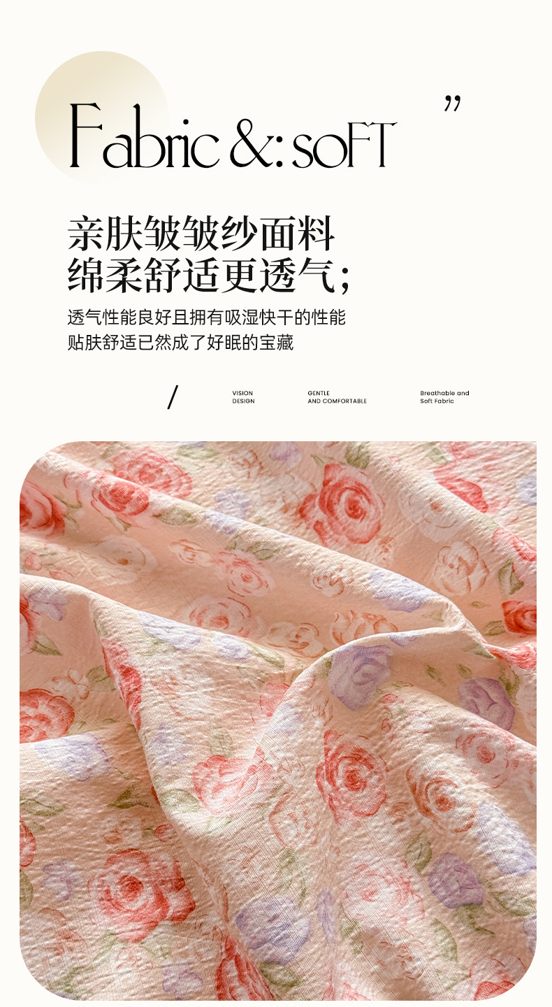 (总)丝芙妮家居 2026新款皱皱棉双层纱泡芙棉四件套,缤纷南瓜,春之约,格纹爱心,花清梦,花枝狗狗,假日小狗,莓果冰淇淋,草莓奶昔,泡芙蝴蝶结,浅川织格,素描花海,晚安甜心,星月点点,组合图仅做展示不可下单