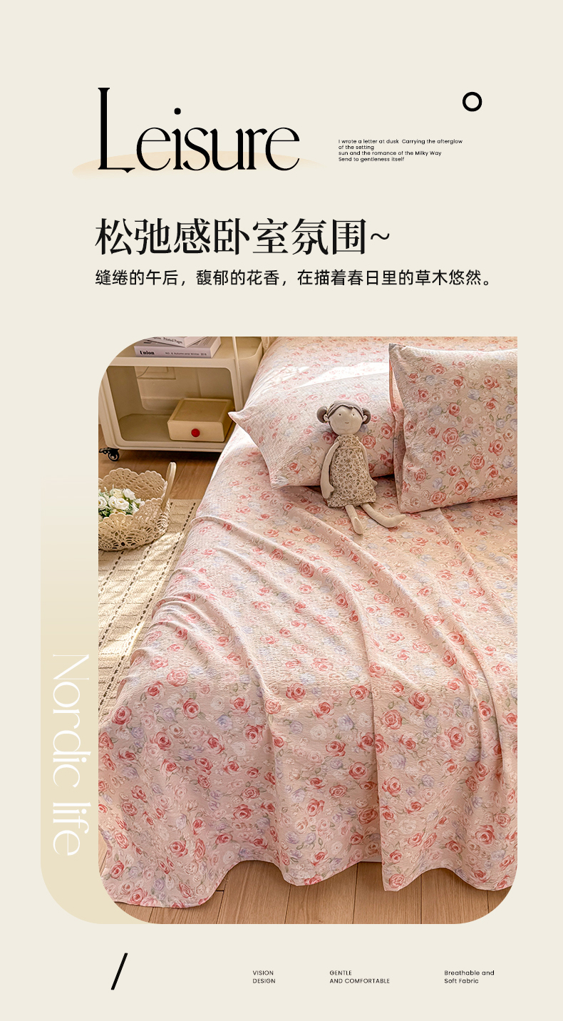当前位置: 91家纺网 > 商品网购 > 床上用品 > 床单 > 丝芙妮家居 2026春夏新款皱皱棉双层纱泡芙棉床单 床单单件 花簇