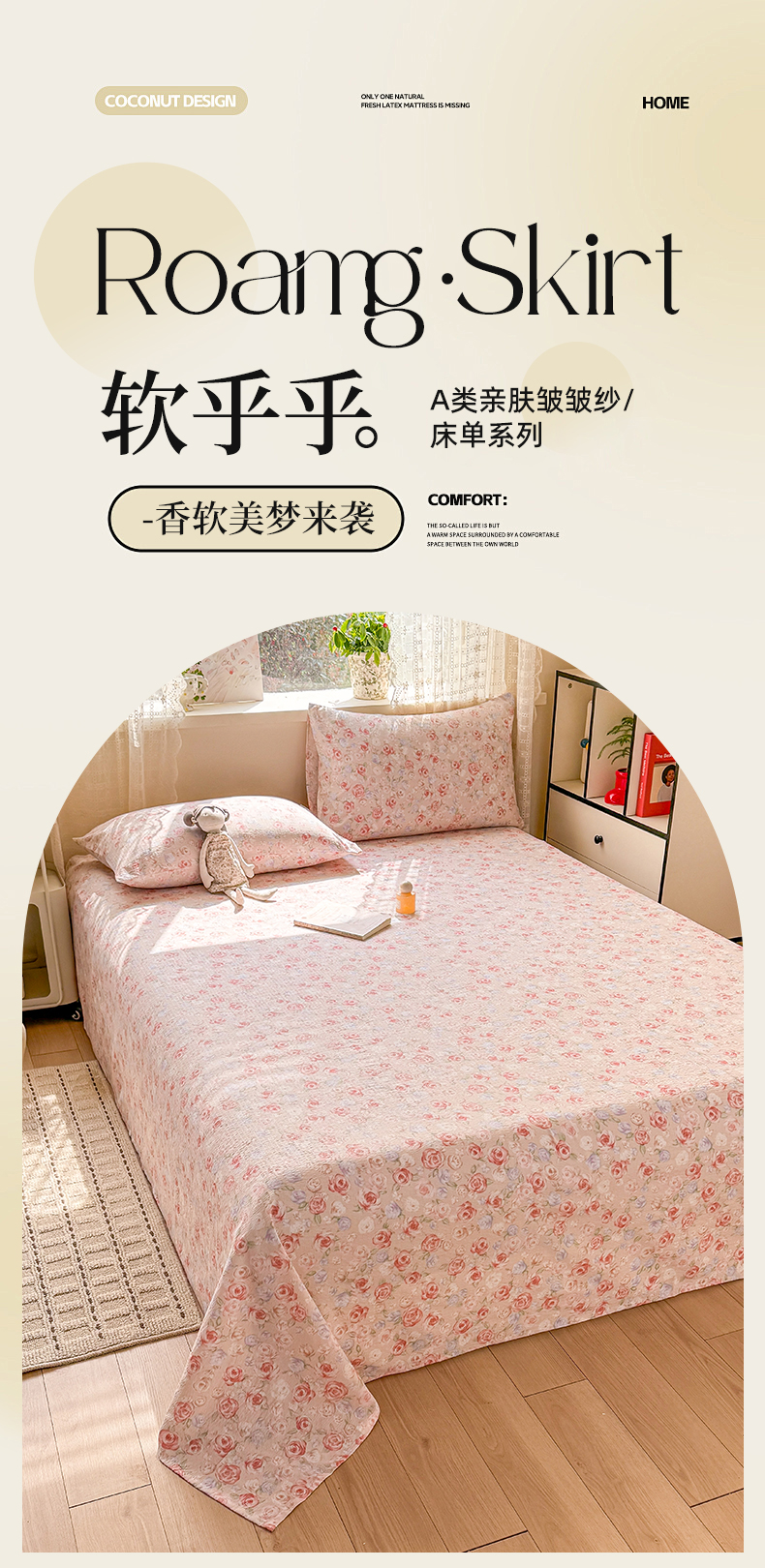 • 91家纺网 家纺一手货源 找家纺 丝芙妮家居 2026春夏新款皱皱棉双层纱泡芙棉床单 床单单件 花簇