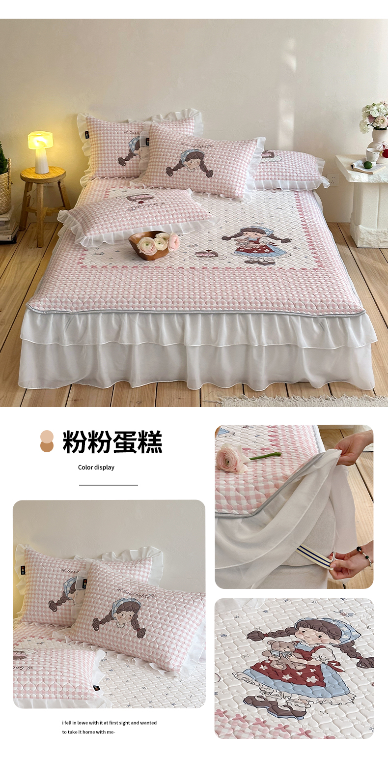 商品名称:RYB红黄兰 2026新款ins床裙款大版冰皮凉感水洗乳胶加厚6mm凉席席子三件套 粉粉蛋糕