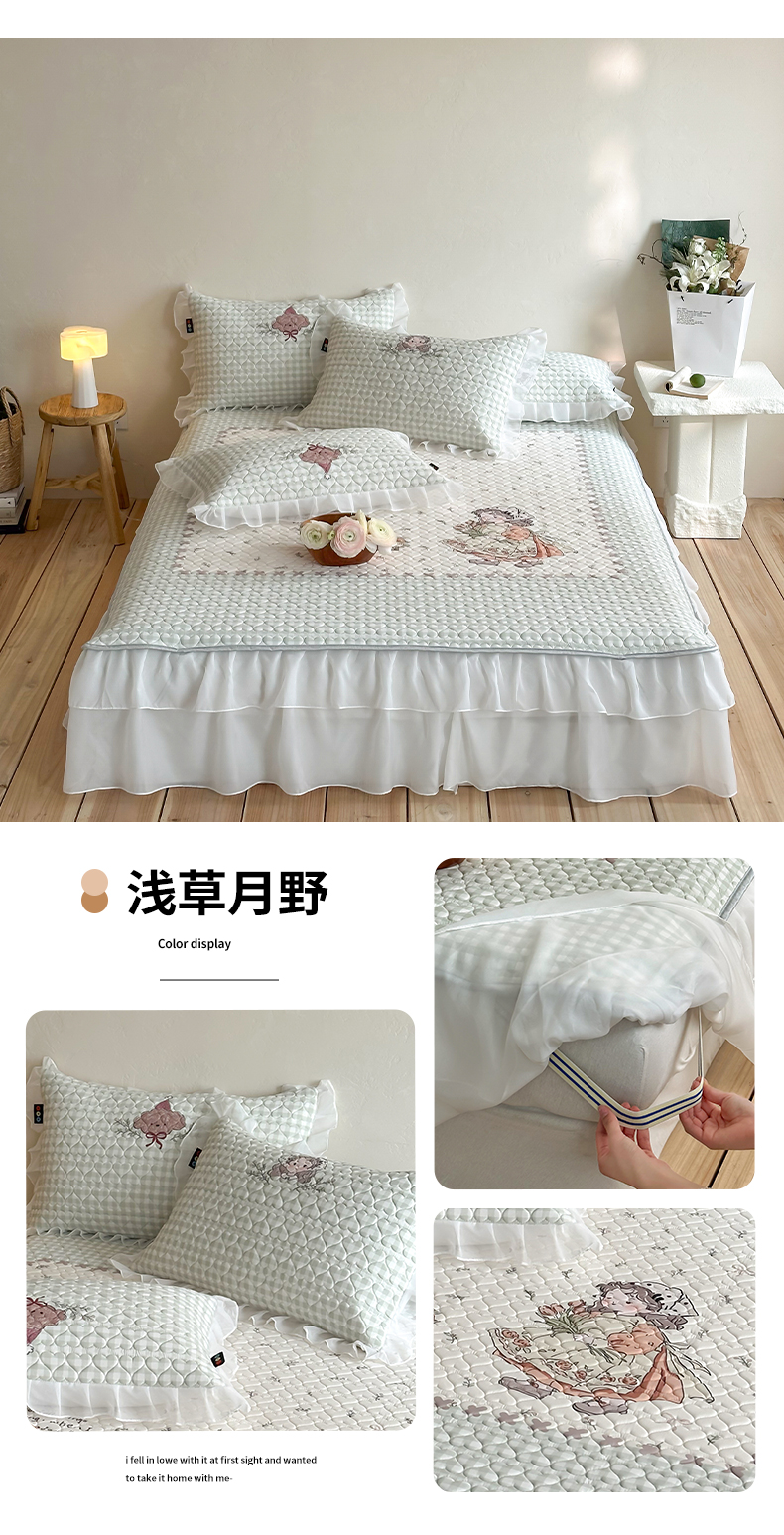 (总)RYB红黄兰 2026新款ins床裙款大版冰皮凉感水洗乳胶加厚6mm凉席席子三件套,粉粉蛋糕,海盐玛奇,浅草月野