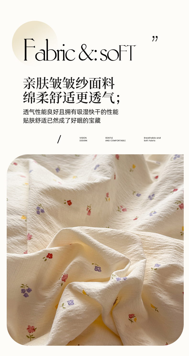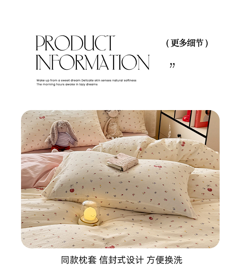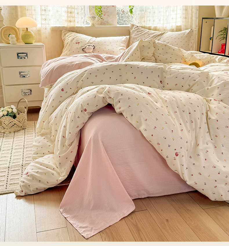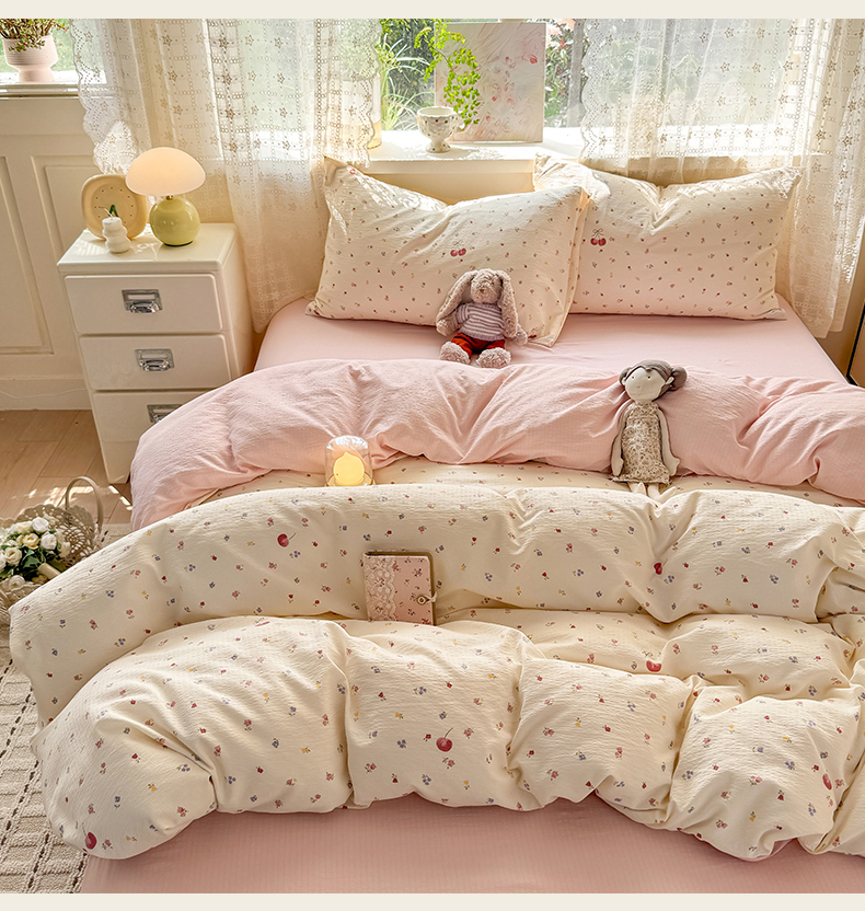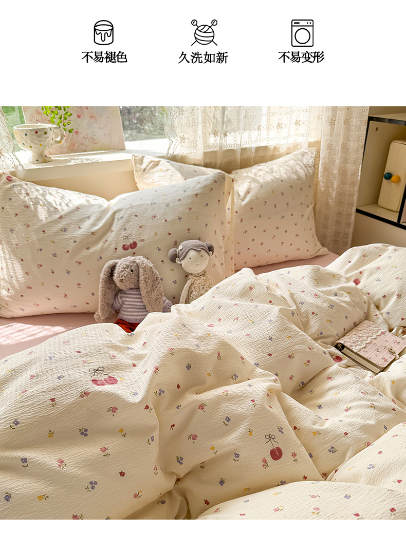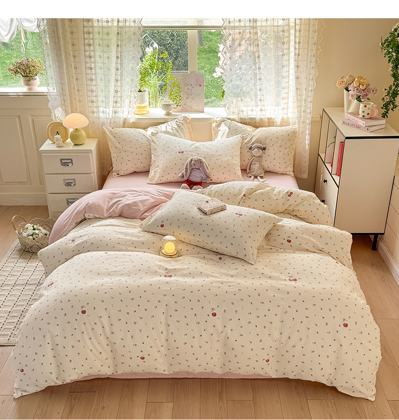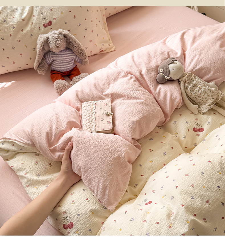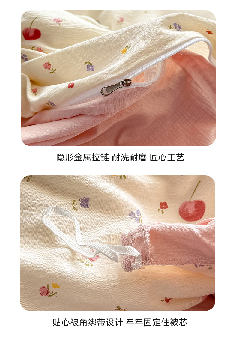 当前位置: 91家纺网 > 商品网购 > 床品套件 > 四件套 > 其它四件套 > 丝芙妮家居 2026春夏新款皱皱棉双层纱泡芙棉四件套 樱桃