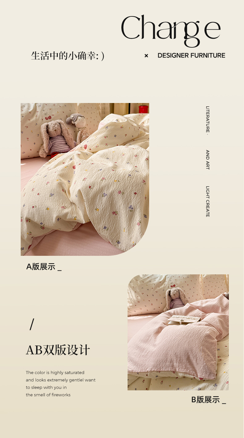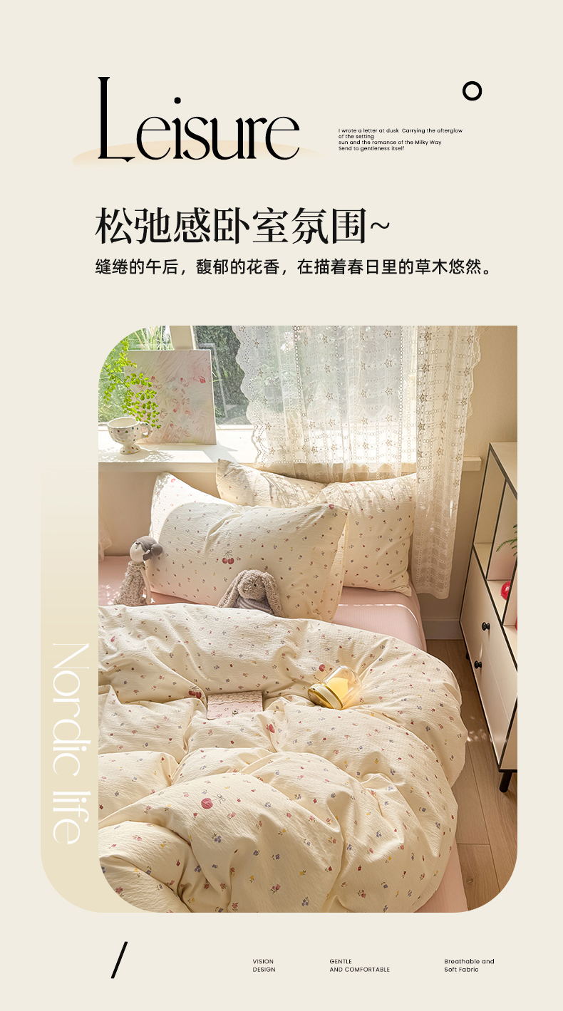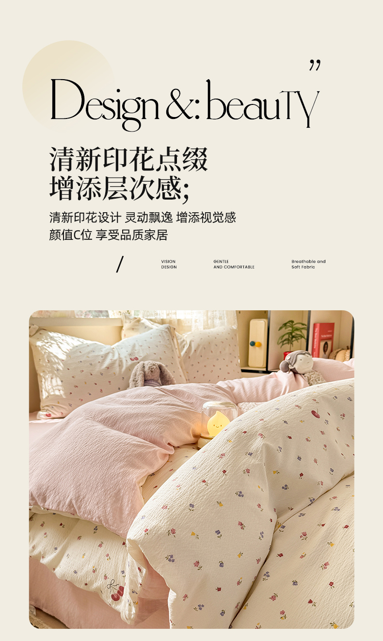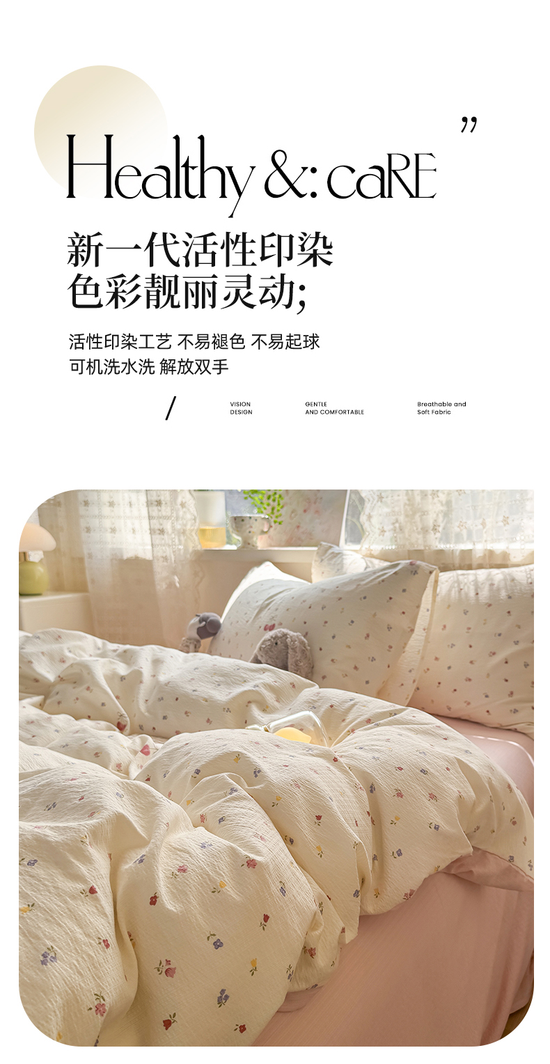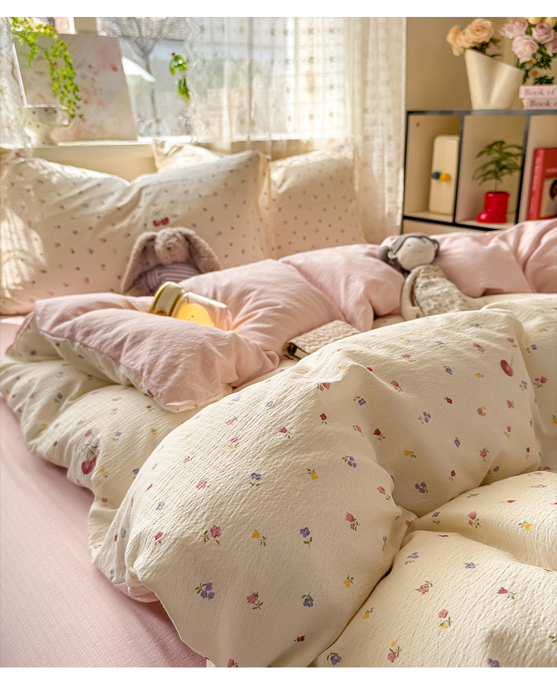 当前位置: 91家纺网 > 商品网购 > 床品套件 > 四件套 > 其它四件套 > 丝芙妮家居 2026春夏新款皱皱棉双层纱泡芙棉四件套 樱桃