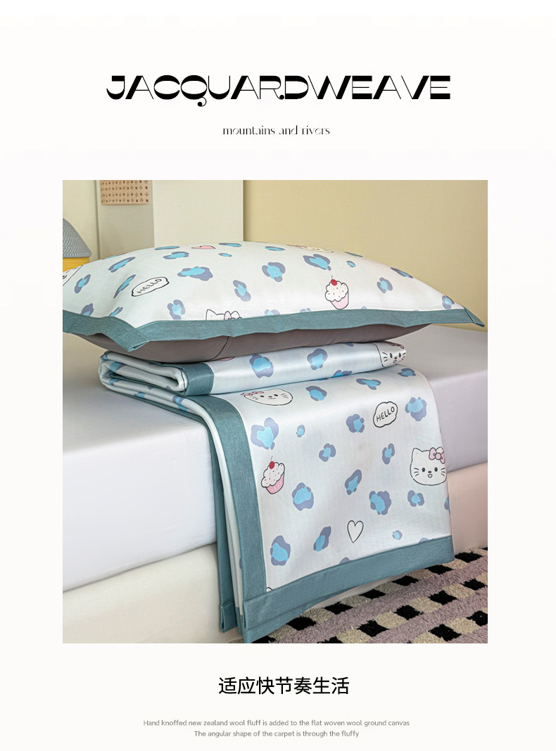(总)倾慕家纺 2026新款A类满天星提花凉感凉席系列,缤纷兔,波波小龙,波浪彩龙,哈皮龙,开心兔,蓝色爱恋,乐动猫咪,律动小球,森林龙宝宝,条纹狗狗,小猫侠,小森林,叶小兔,PP熊猫