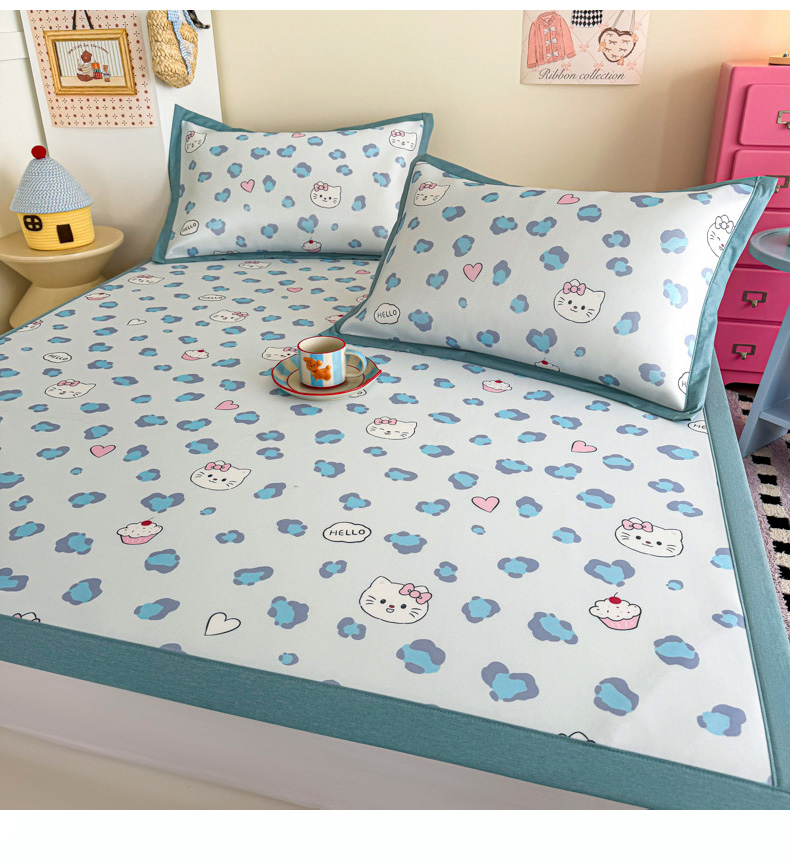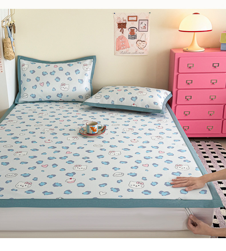 (总)倾慕家纺 2026新款PE时尚风豆豆凉席卡通系列--床席款,爱心熊兔床席款,芭蕉叶床席款,斑点狗狗床席款,经典熊猫床席款,南瓜桔床席款,南瓜蓝床席款,时尚小猫床席款,小狗先生床席款