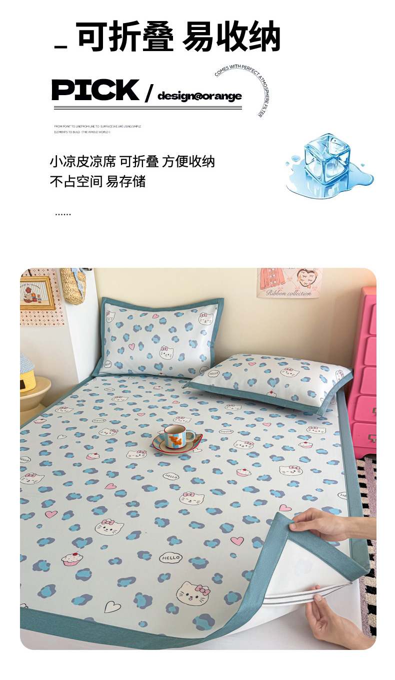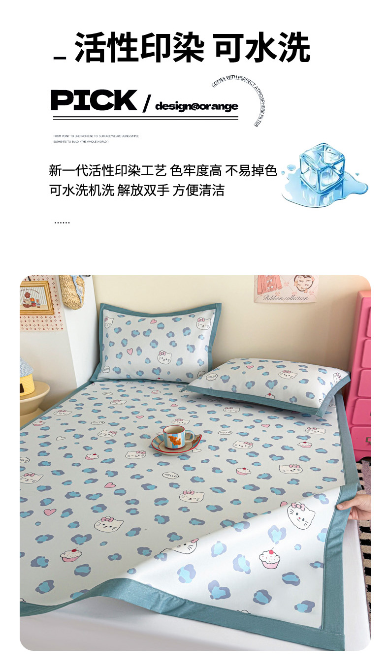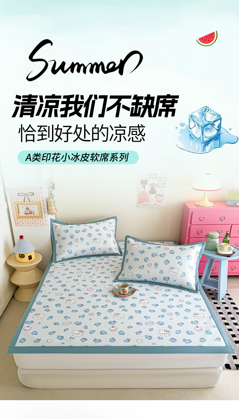 (总)倾慕家纺 2026春夏新款A类印花小冰皮软席凉席席子,组合图仅供展示不可下单,豹猫粉,豹猫蓝,贝壳鲸鱼,冰雪企鹅,蛋糕小兔,云朵小马