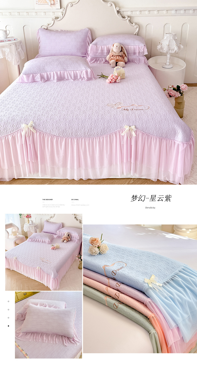 苏米娜2026春夏新品韩版公主风超柔水洗棉床盖四件套刺绣针织棉双层纱纯棉棉麻全棉公主风床盖款四件套,芬迪-香雪粉, 芬迪-可可灰 ,芬迪-松露咖 ,芬迪-星云紫