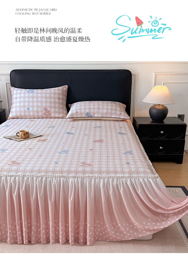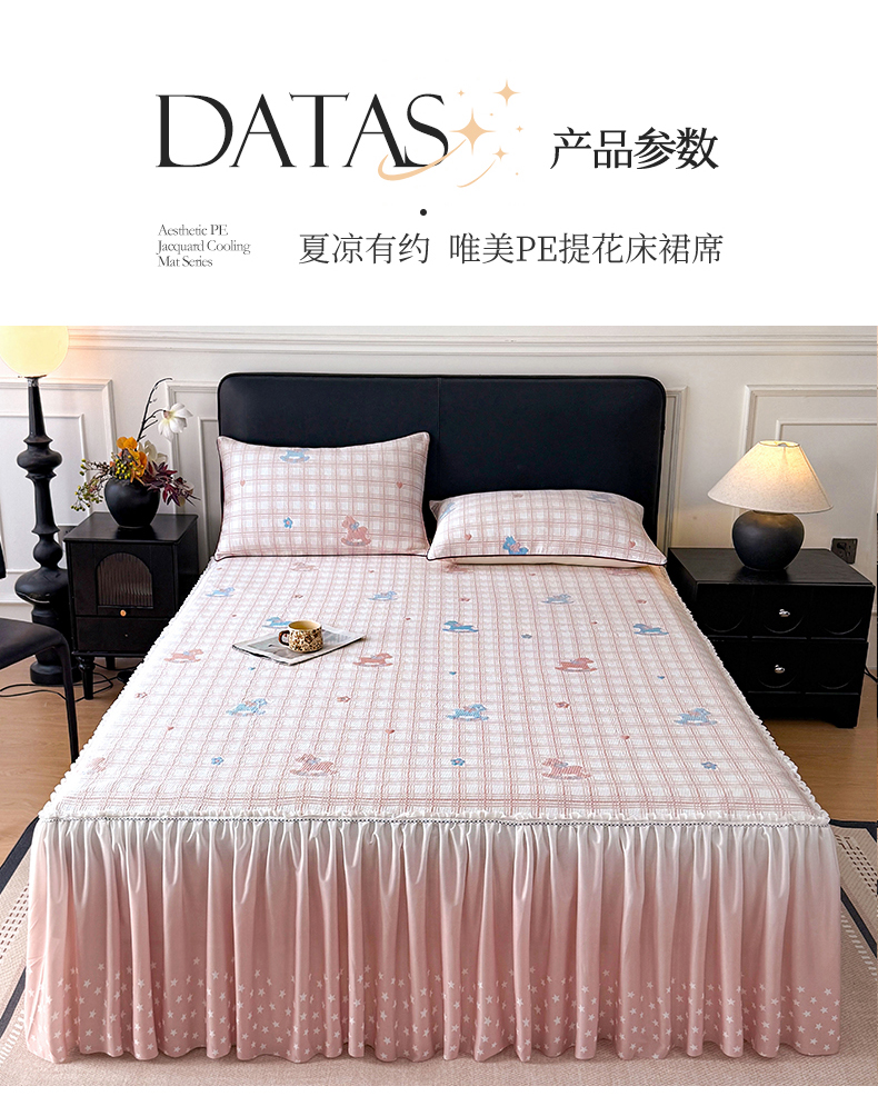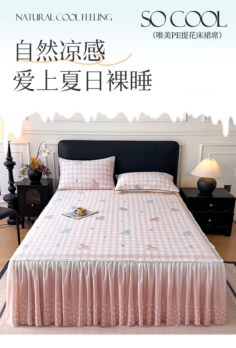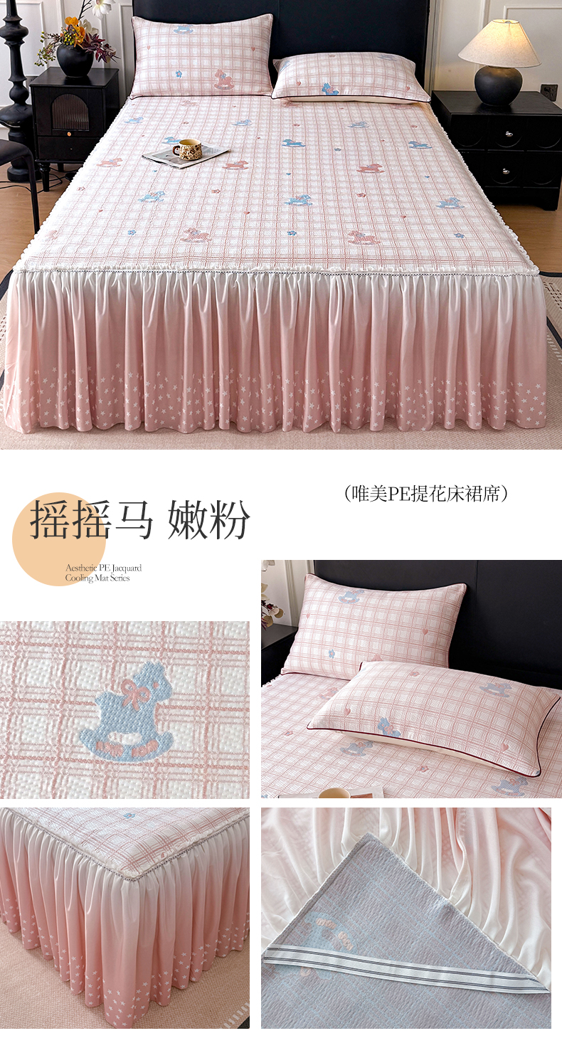 商品名称:情恒家纺 2026新款卡通摇摇马PE提花床裙席席子凉席三件套 摇摇马-嫩粉
