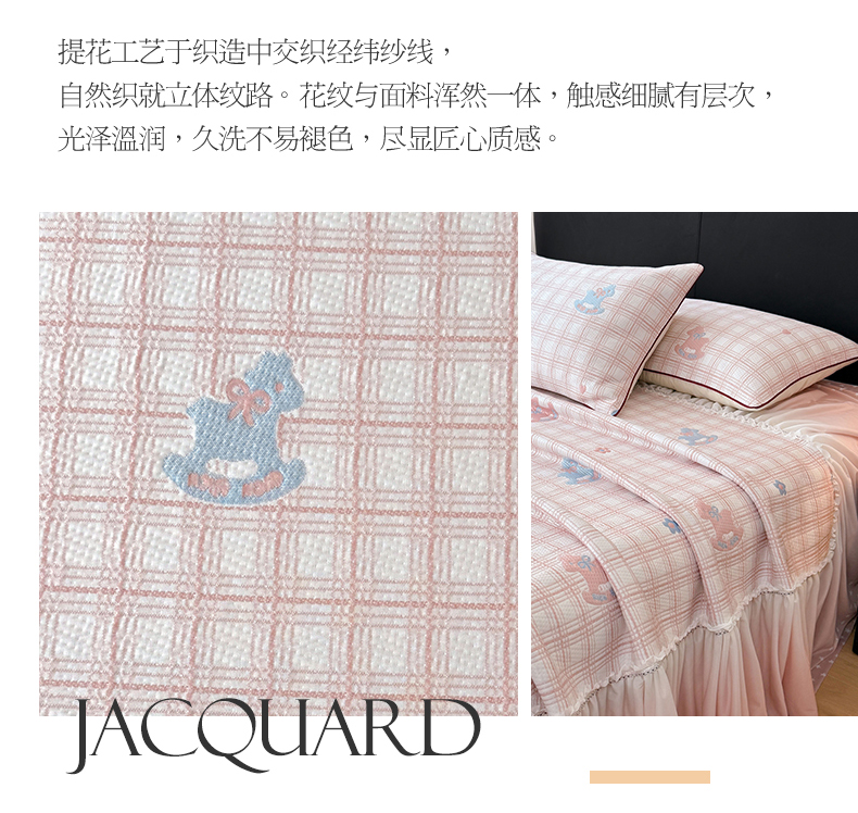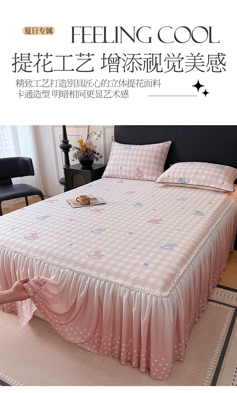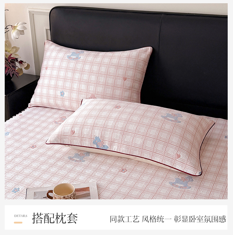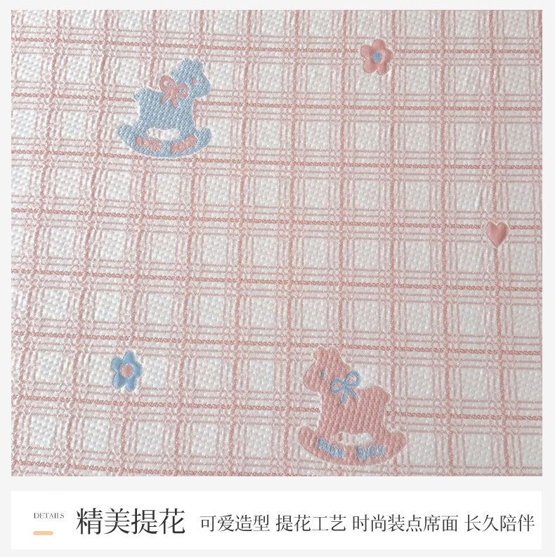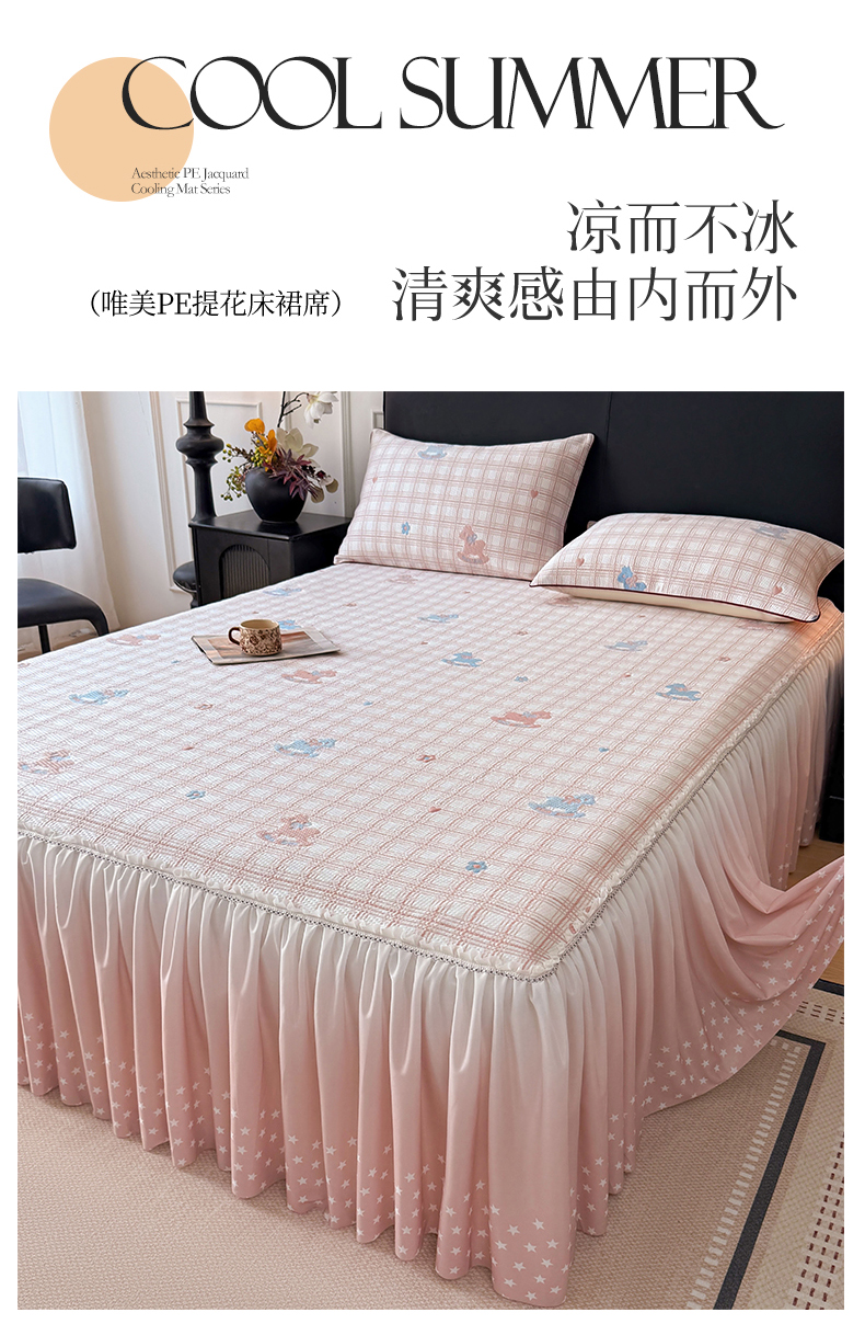 商品名称:情恒家纺 2026新款卡通摇摇马PE提花床裙席席子凉席三件套 摇摇马-嫩粉