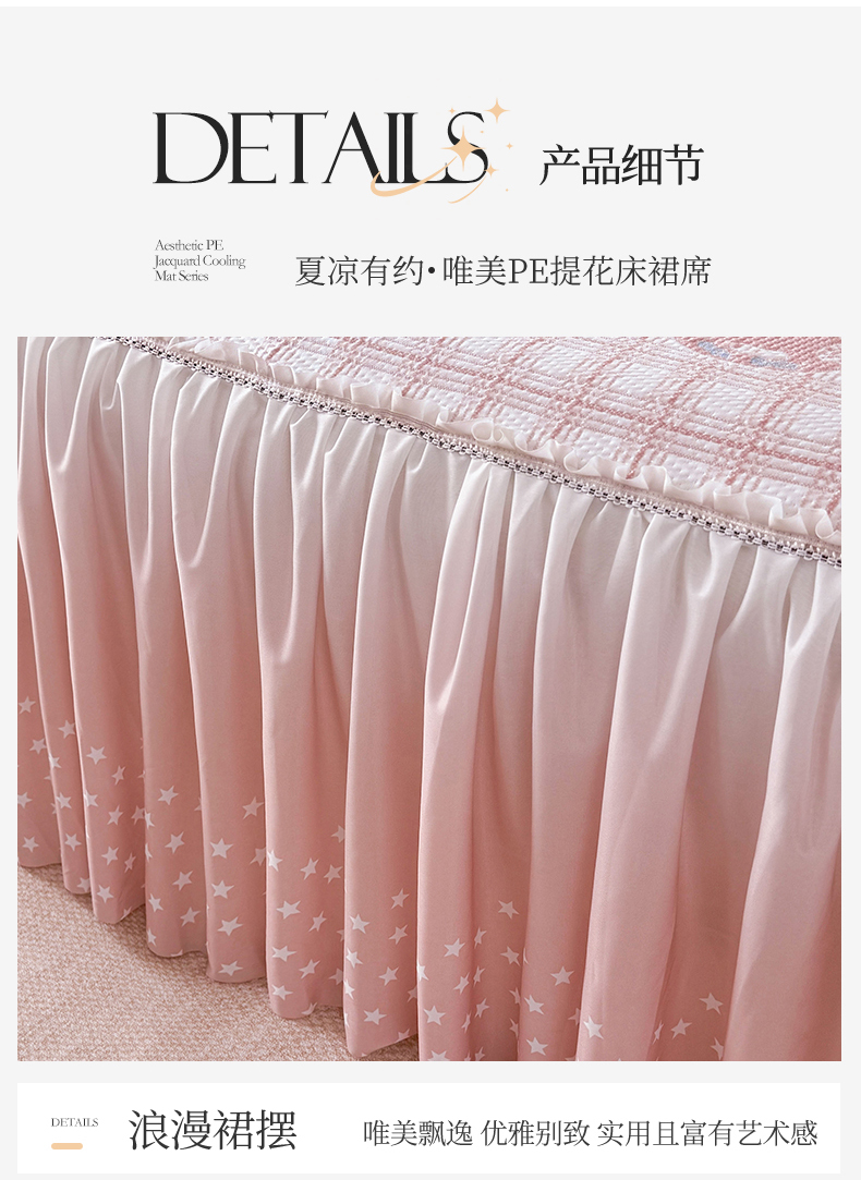 (总)情恒家纺 2026春夏新款PE提花肌理纹床笠式床裙席凉席席子-安娜,安娜-豆沙粉,安娜-抹茶绿,安娜-深远灰,安娜-晚安蓝,安娜-星辰灰