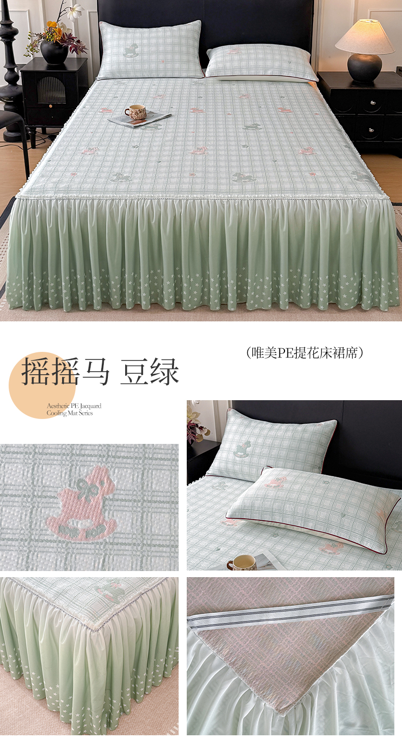 (总)情恒家纺 2026新款卡通摇摇马PE提花床裙席席子凉席三件套,摇摇马-冰蓝,摇摇马-豆绿,摇摇马-卡其,摇摇马-嫩粉,摇摇马-曜黑