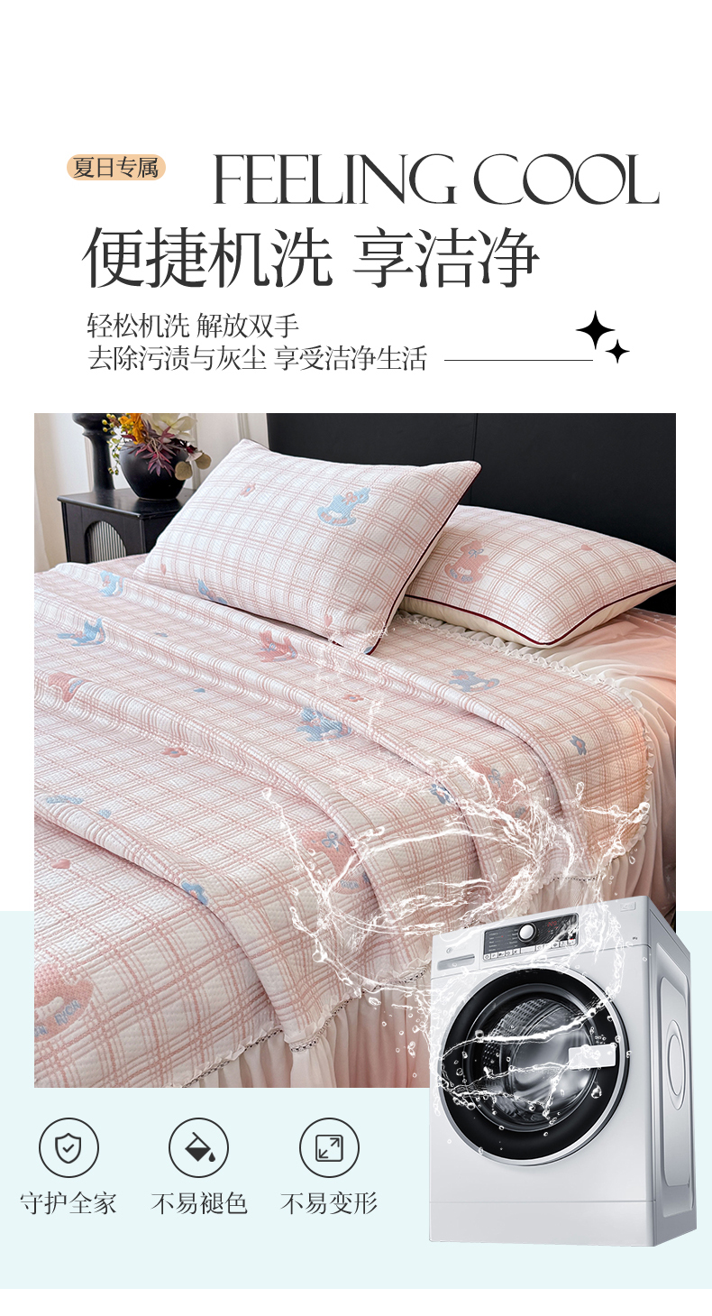 (总)情恒家纺 2025新款凉感豆豆床盖款三件套(淡雅竹香),冰川蓝,星耀灰,树莓粉,牛油果绿,雾蓝