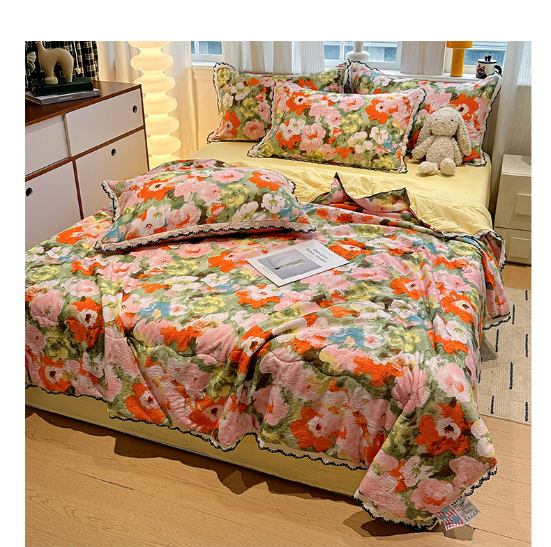• 91家纺网 家纺一手货源 找家纺 花伞家居 2026新款蕾丝花边皱皱双层纱夏被四件套含买家秀 夏被-热情豹纹